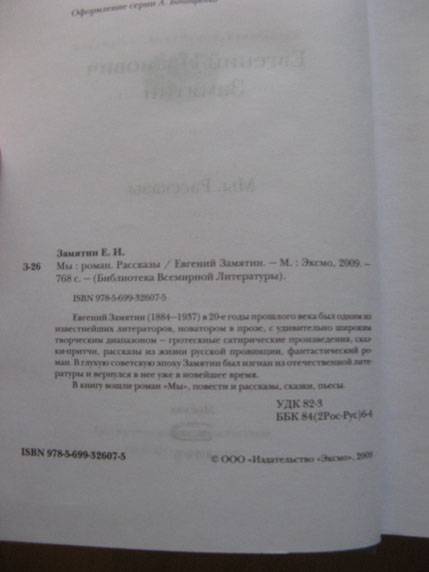 Объем, стр. 768 ISBN 978-5-699-32607-5 Автор Замятин Евгений Иванович Серия Библиотека Всемирной Литературы Год издания книги 2009 Тип обложки Твердый переплет Иллюстрации Без иллюстраций Вес, г 636г Размеры 205х135х35 мм - Отзывы
