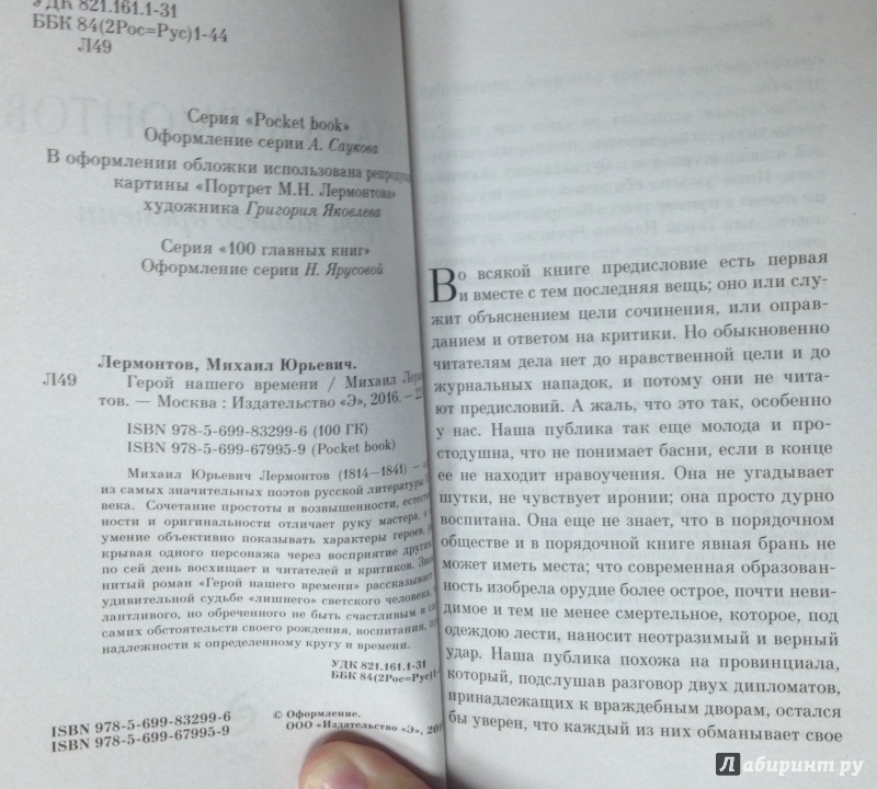 Объем, стр. 224 ISBN 978-5-699-83299-6 Автор Лермонтов Михаил Юрьевич Серия 100 главных книг (обложка) Минимальный возраст 16+ Год издания книги 2017 Тип обложки Мягкий переплет Иллюстрации Без иллюстраций Вес, г 114г Размеры 180х115х13 мм - Отзывы