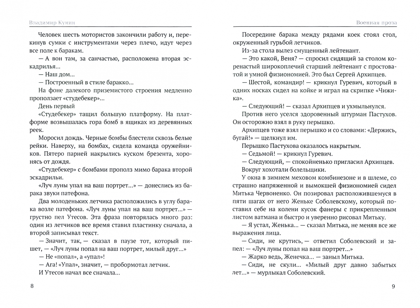 ОписаниеВ сборник «Военная проза» вошли знаменитые повести Владимира Кунина о войне: «Хроника пикирующего бомбардировщика», «Пилот первого класса», «Сошедшие с небес» и «Старшина». В них — история подвига экипажа бомбардировщика Пе-2, история о большой любви, мужестве и героизме молоденькой санитарки Маши и лейтенанта Сергея, история сурового и жесткого старшины, направленного с фронта в учебную часть, в которой проходят обучение молодые пилоты. Экранизации повестей «Хроника пикирующего бомбардировщика», «Сошедшие с небес» и «Старшина» вошли в золотой фонд российского кинематографа.В сборник «Военная проза» вошли знаменитые повести Владимира Кунина о войне: «Хроника пикирующего бомбардировщика», «Пилот первого класса», «Сошедшие с небес» и «Старшина». В них — история подвига экипажа бомбардировщика Пе-2, история о большой любви, мужестве и героизме молоденькой санитарки Маши и лейтенанта Сергея, история сурового и жесткого старшины, направленного с фронта в учебную часть, в которой проходят обучение молодые пилоты. Экранизации повестей «Хроника пикирующего бомбардировщика», «Сошедшие с небес» и «Старшина» вошли в золотой фонд российского кинематографа.