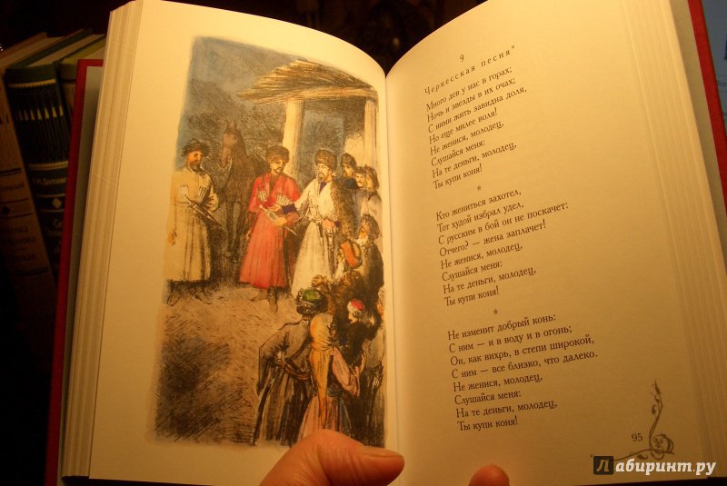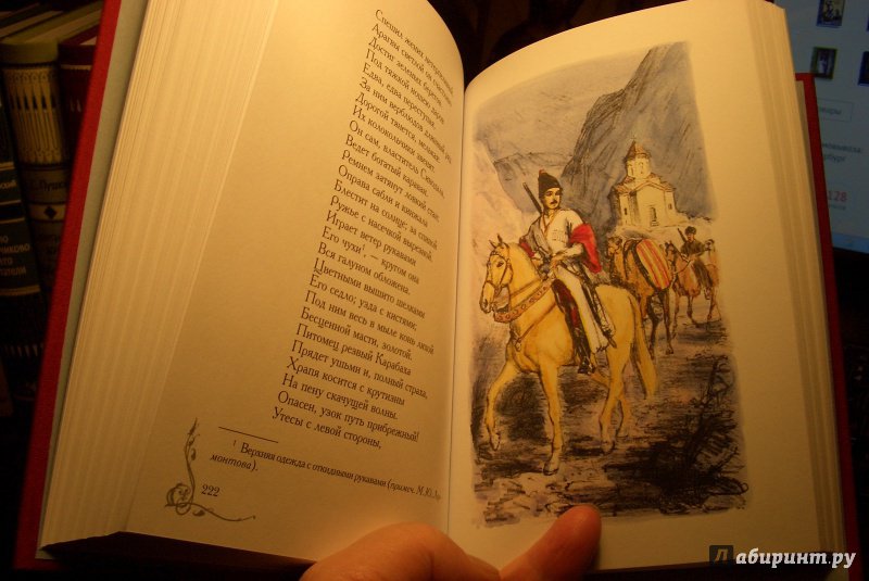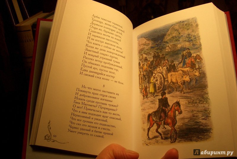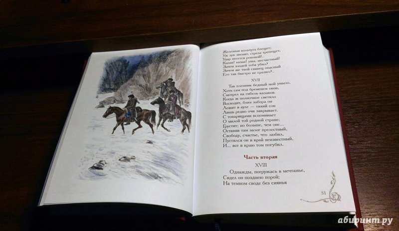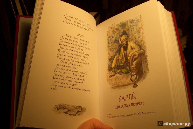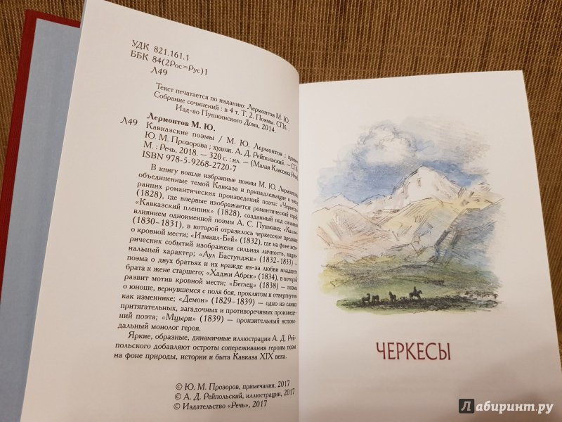 ОписаниеВ книгу вошли избранные поэмы М. Ю. Лермонтова, объединенные темой Кавказа и принадлежащие к числу ранних романтических произведений поэта: "Черкесы" (1828), где впервые изображается романтический герой; "Кавказский пленник" (1828), созданный под сильным влиянием одноименной поэмы А. С. Пушкина; "Каллы"(1830-1831), в которой отразилось черкесское предание о кровной мести; "Измаил-Бей" (1832), где на фоне исторических событий изображена сильная личность, национальный характер; "Аул Бастунджи" (1832-1833) -поэма о двух братьях и их вражде из-за любви младшего брата к жене старшего; "Хаджи Абрек" (1834), в которой развит мотив кровной мести; "Беглец" (1838) - поэма о юноше, вернувшемся с поля боя, проклятом и отвергнутом как изменнике; "Демон" (1829-1839) - одно из самых притягательных, загадочных и противоречивых произведений поэта; "Мцыри" (1839) - пронзительный исповедальный монолог героя.Яркие, образные, динамичные иллюстрации А. Д. Рейпольского добавляют остроты сопереживания героям поэм на фоне природы, истории и быта Кавказа XIX века.СвернутьВ книгу вошли избранные поэмы М. Ю. Лермонтова, объединенные темой Кавказа и принадлежащие к числу ранних романтических произведений поэта: "Черкесы" (1828), где впервые изображается романтический герой; "Кавказский пленник" (1828), созданный под сильным влиянием одноименной поэмы А. С. Пушкина; "Каллы"(1830-1831), в которой отразилось черкесское предание о кровной мести; "Измаил-Бей" (1832), где на фоне исторических событий изображена сильная личность, национальный характер; "Аул Бастунджи" (1832-1833) -поэма о двух братьях и их вражде из-за любви младшего брата к жене старшего; "Хаджи Абрек" (1834), в которой развит мотив кровной мести; "Беглец" (1838) - поэма о юноше, вернувшемся с поля боя, проклятом и отвергнутом как изменнике; "Демон" (1829-1839) - одно из самых притягательных, загадочных и противоречивых произведений поэта; "Мцыри" (1839) - пронзительный исповедальный монолог героя.Яркие, образные, динамичные иллюстрации А. Д. Рейпольского добавляют остроты сопереживания героям поэм на фоне природы, истории и быта Кавказа XIX века.СвернутьСвернуть