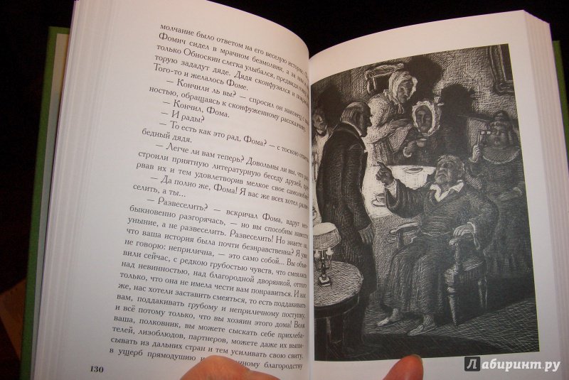 ОписаниеВ повести "Село Степанчиково и его обитатели" Ф. М. Достоевский разыграл пьесу Мольера "Тартюф", но совершено на русский манер. Главный герой - деспот и приживала Фома Фомич Опискин. Его имя стало нарицательным и обозначает человека, севшего на шею своим благодетелям. Иллюстрации Юрия Гершковича отличаются верно подмеченными деталями и обаятельным юмором.В повести "Село Степанчиково и его обитатели" Ф. М. Достоевский разыграл пьесу Мольера "Тартюф", но совершено на русский манер. Главный герой - деспот и приживала Фома Фомич Опискин. Его имя стало нарицательным и обозначает человека, севшего на шею своим благодетелям. Иллюстрации Юрия Гершковича отличаются верно подмеченными деталями и обаятельным юмором.