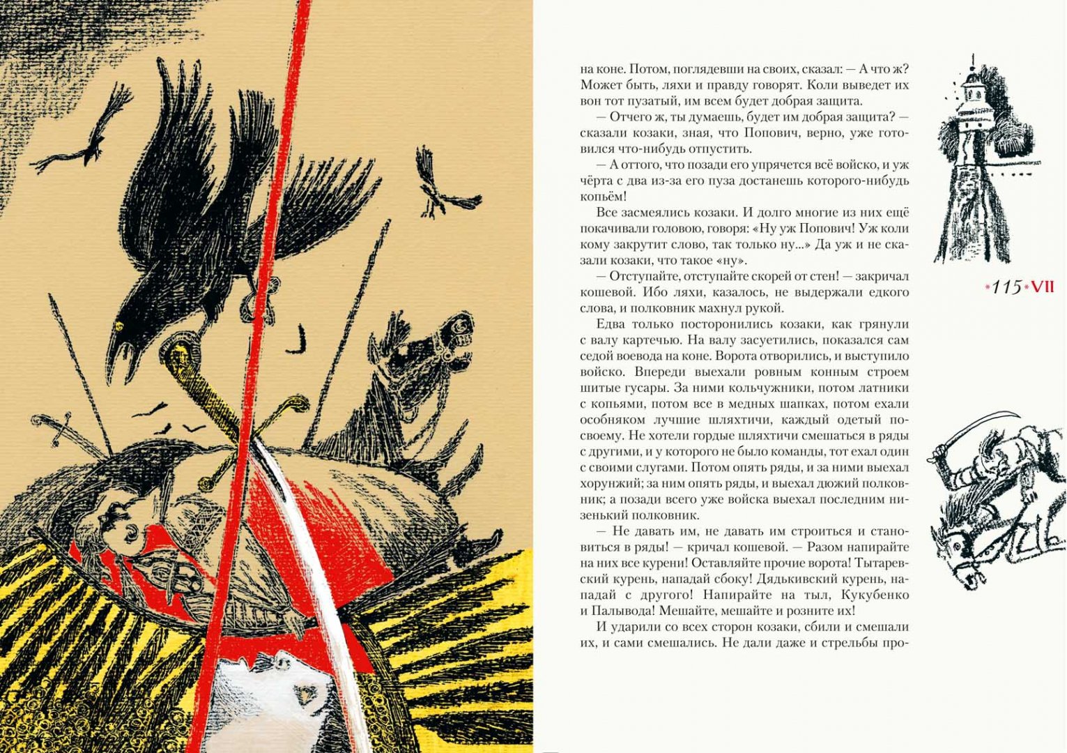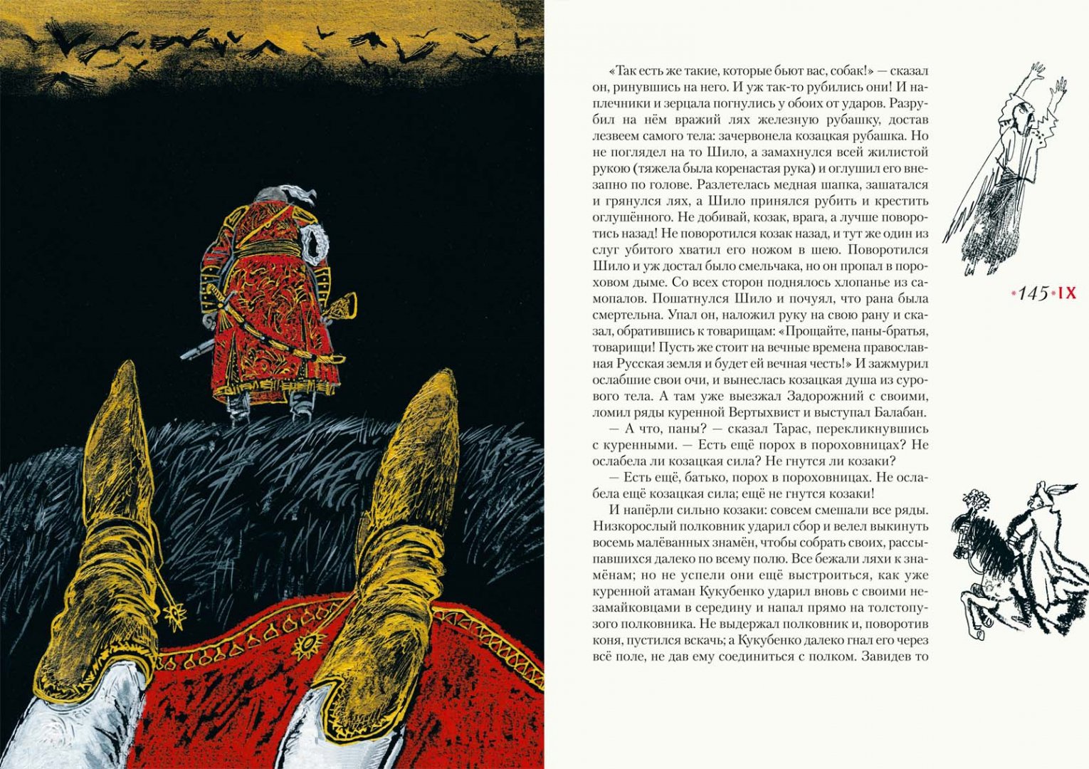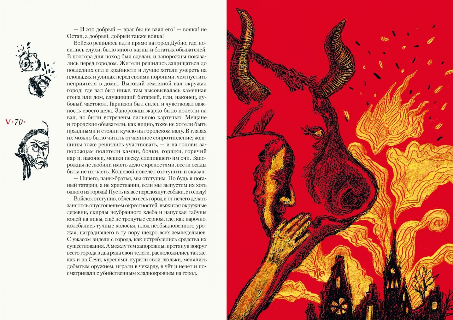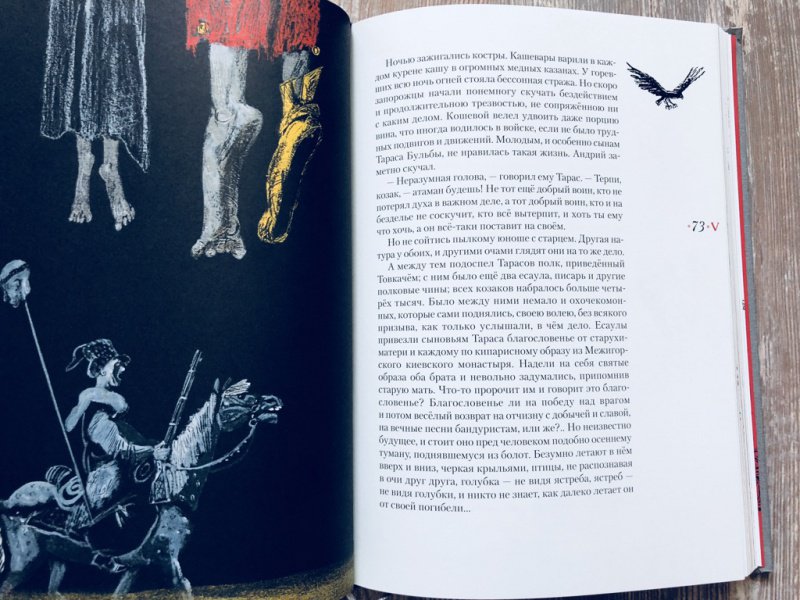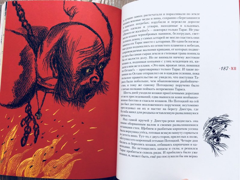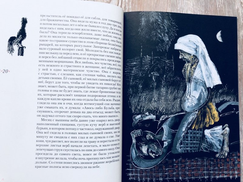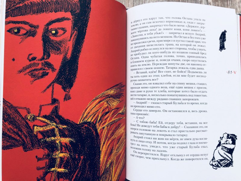 Описание"Тарас Бульба" - повесть Н. В. Гоголя, посвящённая драматическому периоду в истории казачества, когда казаки поднялись на борьбу с польской шляхтой за свободу родной земли в XVI-XVII веках.Книга проиллюстрирована Сергеем Любаевым, лауреатом литературной премии А. Солженицына "за преданную любовь к литературной классике и её конгениальное книжное оформление; за богатейший изобразительный язык, превращающий книгу в дизайнерский шедевр".Для среднего школьного возраста.Об иллюстраторе: Сергей Викторович Любаев - художник, книжный иллюстратор и дизайнер. Трижды был номинирован от России на Международную премию имени Астрид Линдгрен (ALMA). Член Союза художников СССР, Московского Союза художников. В 2018 году Любаеву присуждена премия Александра Солженицына - "за преданную любовь к литературной классике и её конгениальное книжное оформление, за богатейший изобразительный язык, превращающий книгу в дизайнерский шедевр".Сотрудничает с ведущими российскими издательствами. Проиллюстрировал книги Р. Р.. Толкиена, Р. Киплинга, М. Твена, Т. Уайта, А. Блока, Н. Гоголя, Л. Толстого, С. Есенина, И. Стоуна, Э. Хемингуэя, К. Чуковского, К. Паустовского, А. Аверченко, А. Гайдара, Я. Перельмана и других авторов. Занимался оформлением учебников для начальной и средней школы. Неоднократный лауреат Всероссийского конкурса книжной иллюстрации "Образ книги". Участник международных, всероссийских художественных и книжных выставок.В издательстве "Нигма" с иллюстрациями Сергея Любаева вышли книги: "Единорог", "За двумя зайцами", "Одноухая тётушка", "Скандинавские сказки".Свернуть"Тарас Бульба" - повесть Н. В. Гоголя, посвящённая драматическому периоду в истории казачества, когда казаки поднялись на борьбу с польской шляхтой за свободу родной земли в XVI-XVII веках.Книга проиллюстрирована Сергеем Любаевым, лауреатом литературной премии А. Солженицына "за преданную любовь к литературной классике и её конгениальное книжное оформление; за богатейший изобразительный язык, превращающий книгу в дизайнерский шедевр".Для среднего школьного возраста.Об иллюстраторе: Сергей Викторович Любаев - художник, книжный иллюстратор и дизайнер. Трижды был номинирован от России на Международную премию имени Астрид Линдгрен (ALMA). Член Союза художников СССР, Московского Союза художников. В 2018 году Любаеву присуждена премия Александра Солженицына - "за преданную любовь к литературной классике и её конгениальное книжное оформление, за богатейший изобразительный язык, превращающий книгу в дизайнерский шедевр".Сотрудничает с ведущими российскими издательствами. Проиллюстрировал книги Р. Р.. Толкиена, Р. Киплинга, М. Твена, Т. Уайта, А. Блока, Н. Гоголя, Л. Толстого, С. Есенина, И. Стоуна, Э. Хемингуэя, К. Чуковского, К. Паустовского, А. Аверченко, А. Гайдара, Я. Перельмана и других авторов. Занимался оформлением учебников для начальной и средней школы. Неоднократный лауреат Всероссийского конкурса книжной иллюстрации "Образ книги". Участник международных, всероссийских художественных и книжных выставок.В издательстве "Нигма" с иллюстрациями Сергея Любаева вышли книги: "Единорог", "За двумя зайцами", "Одноухая тётушка", "Скандинавские сказки".СвернутьСвернуть