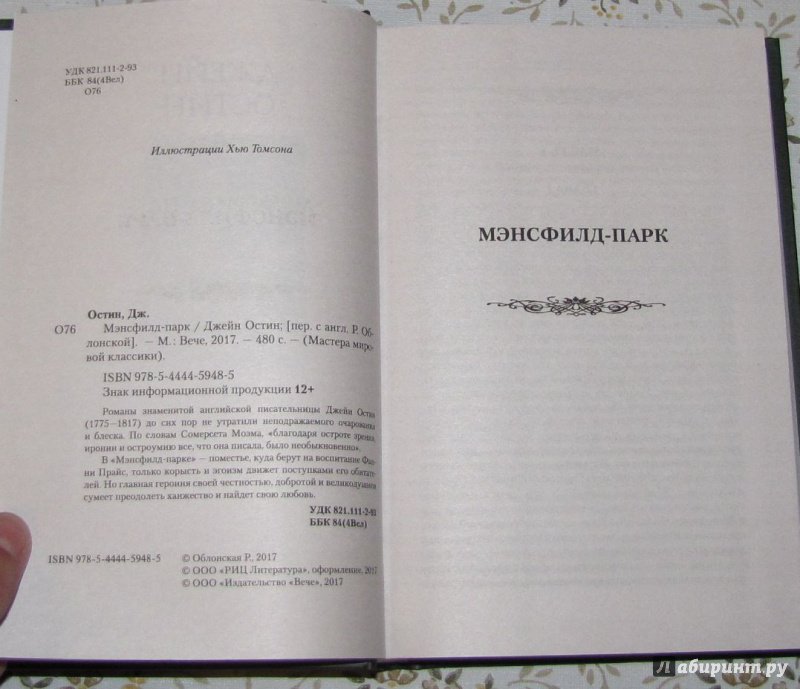 Объем, стр. 480 ISBN 978-5-4444-5948-5 Автор Остин Джейн, Облонская Раиса Ефимовна, Томсон Хью Художник Томсон Хью Переводчик Облонская Раиса Ефимовна Серия Мастера мировой классики Масса 268 г Размеры 180x115x22 мм Минимальный возраст 12+ Год издания книги 2017 Тип обложки Твердый переплет Иллюстрации Черно-белые Вес, г 428г Размеры 206х137х26 мм - Отзывы