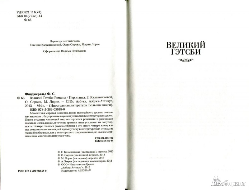 ОписаниеАбсолютная мировая классика, проза высочайшего уровня, созданная мастером с безупречным вкусом и уникальным литературным даром. Почти столетие читающий мир восторгается романами и рассказами писателя "века джаза", и течение времени лишь усиливает их популярность. Четыре главных романа собраны в эту книгу, четыре жемчужины, созданные писателем, чей путь к успеху в литературе был отнюдь не таким безоблачным, как у некоторых его современников, но чья посмертная слава многих отодвинула в тень.Абсолютная мировая классика, проза высочайшего уровня, созданная мастером с безупречным вкусом и уникальным литературным даром. Почти столетие читающий мир восторгается романами и рассказами писателя "века джаза", и течение времени лишь усиливает их популярность. Четыре главных романа собраны в эту книгу, четыре жемчужины, созданные писателем, чей путь к успеху в литературе был отнюдь не таким безоблачным, как у некоторых его современников, но чья посмертная слава многих отодвинула в тень.
