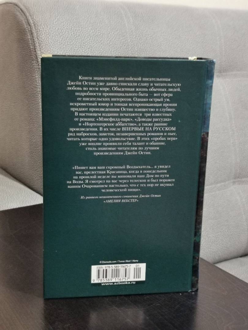 ОписаниеКниги знаменитой английской писательницы Джейн Остин уже давно снискали славу и читательскую любовь во всем мире. Обыденная жизнь обычных людей, подробности провинциального быта - вот сфера ее писательских интересов. Однако острый ум, искрометный юмор и тонкая всепроникающая ирония придают произведениям Остин изящество и глубину.В настоящем издании печатаются три известных ее романа: "Мэнсфилд-парк", "Доводы рассудка" и "Нортенгерское аббатство", а также ранние произведения. В их числе впервые на русском ряд набросок, заметок, незавершенных романов и пьес, читать которые одно удовольствие. В этих "пробах пера" уже вполне проявили себя талант и обаяние, столь знакомые читателям по лучшим произведениям Джейн Остин.Книги знаменитой английской писательницы Джейн Остин уже давно снискали славу и читательскую любовь во всем мире. Обыденная жизнь обычных людей, подробности провинциального быта - вот сфера ее писательских интересов. Однако острый ум, искрометный юмор и тонкая всепроникающая ирония придают произведениям Остин изящество и глубину.В настоящем издании печатаются три известных ее романа: "Мэнсфилд-парк", "Доводы рассудка" и "Нортенгерское аббатство", а также ранние произведения. В их числе впервые на русском ряд набросок, заметок, незавершенных романов и пьес, читать которые одно удовольствие. В этих "пробах пера" уже вполне проявили себя талант и обаяние, столь знакомые читателям по лучшим произведениям Джейн Остин.