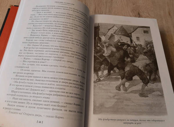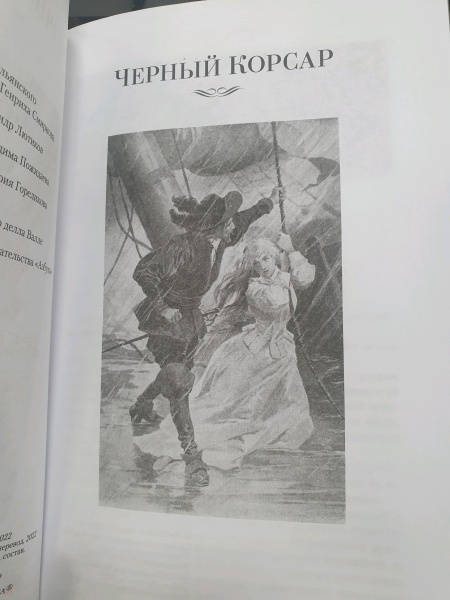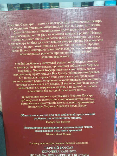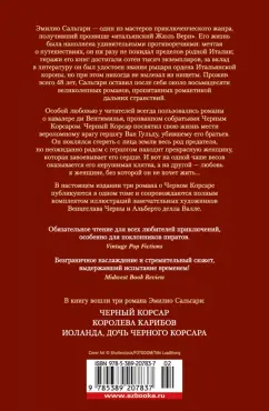 ОписаниеЭмилио Сальгари — один из мастеров приключенческого жанра, получивший прозвище «итальянский Жюль Верн». Его жизнь была наполнена удивительными противоречиями: мечтая о путешествиях, он ни разу не покидал пределов родной Италии; тиражи его книг достигали сотен тысяч экземпляров, за вклад в литературу он был удостоен звания рыцаря ордена Итальянской короны, но при этом никогда не вылезал из нищеты. Прожив всего 48 лет, Сальгари оставил после себя около восьмидесяти великолепных романов, пропитанных романтикой дальних странствий.Особой любовью у читателей всегда пользовались романы о Кавалере ди Вентимилья, прозванного собратьями Черным Корсаром. Черный Корсар посвятил свою жизнь мести вероломному врагу, герцогу Ван Гульда, убившему его братьев. Он поклялся стереть с лица земли весь род предателя, но неожиданно рядом с герцогом он находит прекрасную женщину, которая завоевывает его сердце. И вот на одной чаше весов оказывается его нерушимая клятва, а на другой – любовь к женщине, без которой он не хочет жить...В настоящем издании три романа о Черном Корсаре публикуются в одном томе и сопровождаются полным комплектом иллюстраций замечательных художников Венцеслава Черны и Альберто Делла Валле.СвернутьЭмилио Сальгари — один из мастеров приключенческого жанра, получивший прозвище «итальянский Жюль Верн». Его жизнь была наполнена удивительными противоречиями: мечтая о путешествиях, он ни разу не покидал пределов родной Италии; тиражи его книг достигали сотен тысяч экземпляров, за вклад в литературу он был удостоен звания рыцаря ордена Итальянской короны, но при этом никогда не вылезал из нищеты. Прожив всего 48 лет, Сальгари оставил после себя около восьмидесяти великолепных романов, пропитанных романтикой дальних странствий.Особой любовью у читателей всегда пользовались романы о Кавалере ди Вентимилья, прозванного собратьями Черным Корсаром. Черный Корсар посвятил свою жизнь мести вероломному врагу, герцогу Ван Гульда, убившему его братьев. Он поклялся стереть с лица земли весь род предателя, но неожиданно рядом с герцогом он находит прекрасную женщину, которая завоевывает его сердце. И вот на одной чаше весов оказывается его нерушимая клятва, а на другой – любовь к женщине, без которой он не хочет жить...В настоящем издании три романа о Черном Корсаре публикуются в одном томе и сопровождаются полным комплектом иллюстраций замечательных художников Венцеслава Черны и Альберто Делла Валле.СвернутьСвернуть