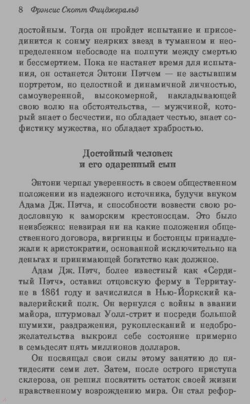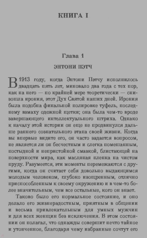 ОписаниеФрэнсис Скотт Фицджеральд, возвестивший миру о начале нового века - "века джаза", стоит особняком в современной американской классике. Плоть от плоти той легендарной эпохи, он отразил ее ярче и беспристрастнее всех. Эрнест Хемингуэй писал о нем: "Его талант был таким естественным, как узор из пыльцы на крыльях бабочки". Все мы помним потрясающий роман "Великий Гэтсби" и его блестящую экранизацию с Леонардо ДиКаприо в главной роли. В этот раз Фицджеральд знакомит нас с новыми героями "ревущих двадцатых" - блистательным Энтони Пэтчем и его прекрасной женой Глорией. Дожидаясь, пока умрет дедушка Энтони, мультимиллионер, и оставит им свое громадное состояние, они прожигают жизнь в Нью-Йорке, ужинают в лучших ресторанах, арендуют самое престижное жилье. Не сразу к ним приходит понимание того, что каждый выбор имеет свою цену - иногда неподъемную…Фрэнсис Скотт Фицджеральд, возвестивший миру о начале нового века - "века джаза", стоит особняком в современной американской классике. Плоть от плоти той легендарной эпохи, он отразил ее ярче и беспристрастнее всех. Эрнест Хемингуэй писал о нем: "Его талант был таким естественным, как узор из пыльцы на крыльях бабочки". Все мы помним потрясающий роман "Великий Гэтсби" и его блестящую экранизацию с Леонардо ДиКаприо в главной роли. В этот раз Фицджеральд знакомит нас с новыми героями "ревущих двадцатых" - блистательным Энтони Пэтчем и его прекрасной женой Глорией. Дожидаясь, пока умрет дедушка Энтони, мультимиллионер, и оставит им свое громадное состояние, они прожигают жизнь в Нью-Йорке, ужинают в лучших ресторанах, арендуют самое престижное жилье. Не сразу к ним приходит понимание того, что каждый выбор имеет свою цену - иногда неподъемную…