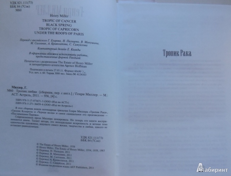 Объем, стр. 960 ISBN 978-5-17-073671-3 Автор Миллер Генри, Егоров Г., Пальцев Н., Минушин В. Переводчик Егоров Г., Пальцев Н., Минушин В. Серия Весь Год издания книги 2011 Тип обложки Твердый переплет Иллюстрации Без иллюстраций Вес, г 934 Размеры 215х150х43 мм - Отзывы