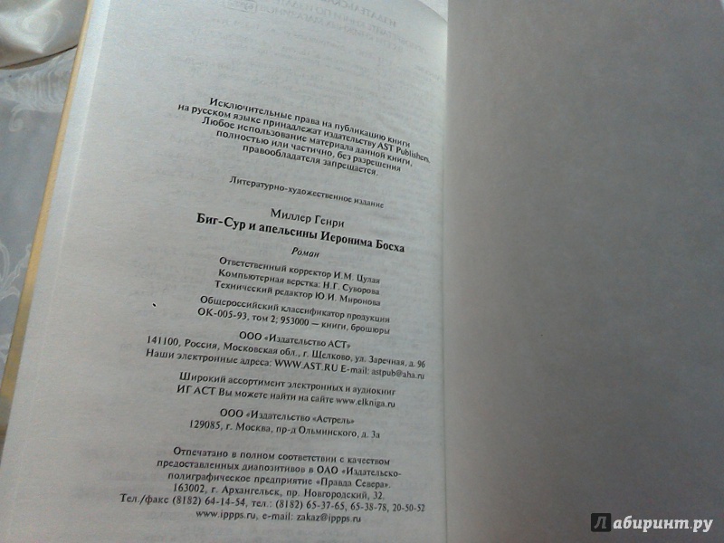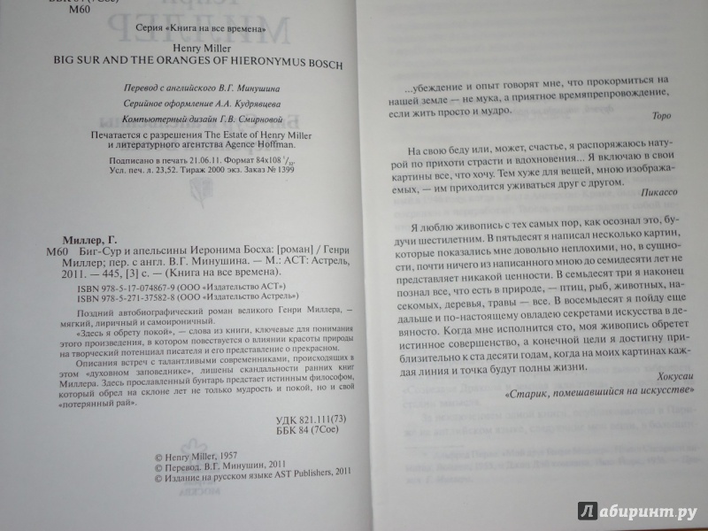 --Генри Миллер: Биг-Сур и апельсины Иеронима БосхаРусская классическая и современная литератураДетектив. Остросюжетная литератураЗарубежная художественная литератураРусская художественная литератураФэнтезиДраматургияПоэзияПриключенияФантастикаЭпос и фольклорКлассическая прозаАфоризмыИсторическая прозаДетективыБасниСентиментальная прозаОтечественный боевикСовременная прозаМолодежная литератураЗарубежная классическая и современная литература