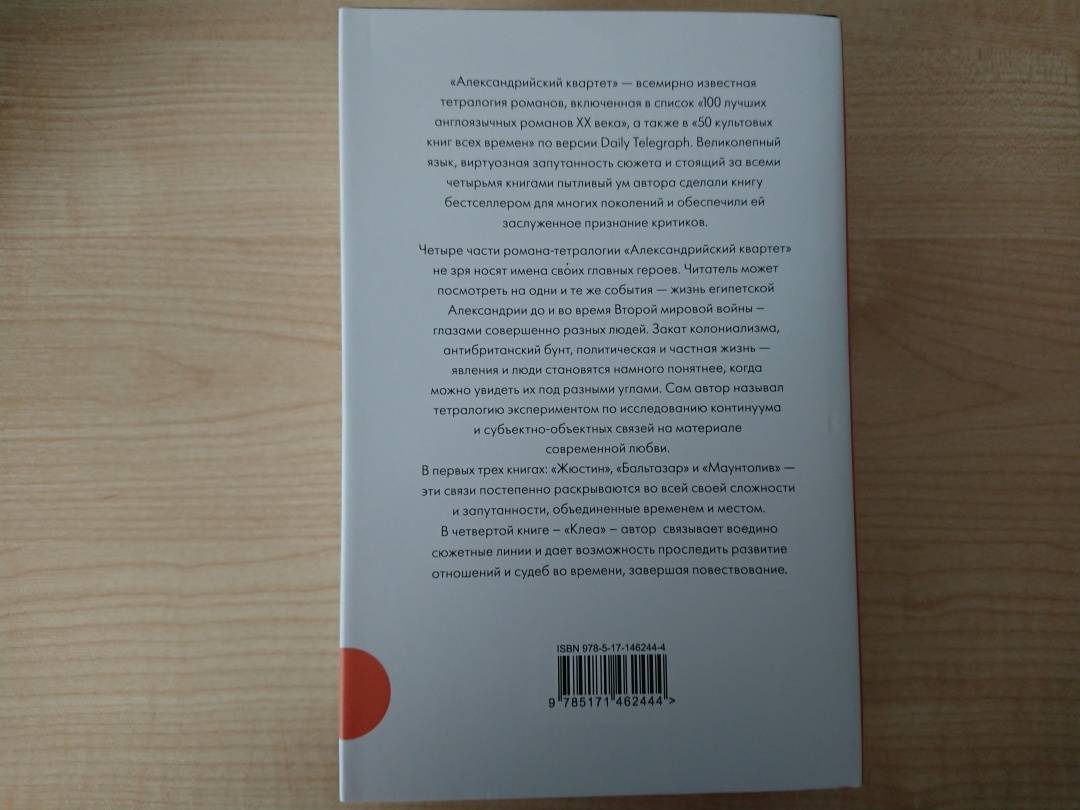 ОписаниеЧетыре части романа-тетралогии "Александрийский квартет" не зря носят имена своих главных героев. Читатель может посмотреть на одни и те же события - жизнь египетской Александрии до и во время Второй мировой войны - глазами совершенно разных людей. Закат колониализма, антибританский бунт, политическая и частная жизнь - явления и люди становятся намного понятнее, когда можно увидеть их под разными углами. Сам автор называл тетралогию экспериментом по исследованию континуума и субъектно-объектных связей на материале современной любви. В первых трех книгах: "Жюстин", "Бальтазар" и "Маунтолив" - эти связи постепенно раскрываются во всей своей сложности и запутанности, объединенные временем и местом. В четвертой книге - "Клеа" - автор связывает воедино сюжетные линии и дает возможность проследить развитие отношений и судеб во времени, завершая повествование. Текст данного издания был переработан переводчиком В.Михайлиным и дополнен вступительной статьей и комментариями.Четыре части романа-тетралогии "Александрийский квартет" не зря носят имена своих главных героев. Читатель может посмотреть на одни и те же события - жизнь египетской Александрии до и во время Второй мировой войны - глазами совершенно разных людей. Закат колониализма, антибританский бунт, политическая и частная жизнь - явления и люди становятся намного понятнее, когда можно увидеть их под разными углами. Сам автор называл тетралогию экспериментом по исследованию континуума и субъектно-объектных связей на материале современной любви. В первых трех книгах: "Жюстин", "Бальтазар" и "Маунтолив" - эти связи постепенно раскрываются во всей своей сложности и запутанности, объединенные временем и местом. В четвертой книге - "Клеа" - автор связывает воедино сюжетные линии и дает возможность проследить развитие отношений и судеб во времени, завершая повествование. Текст данного издания был переработан переводчиком В.Михайлиным и дополнен вступительной статьей и комментариями.