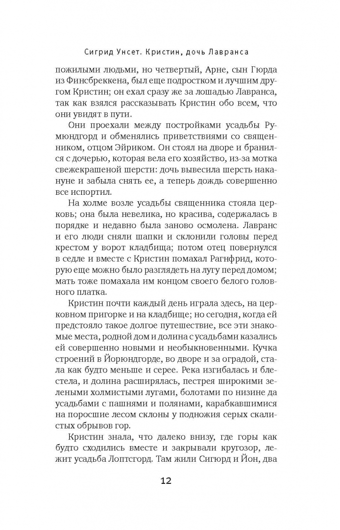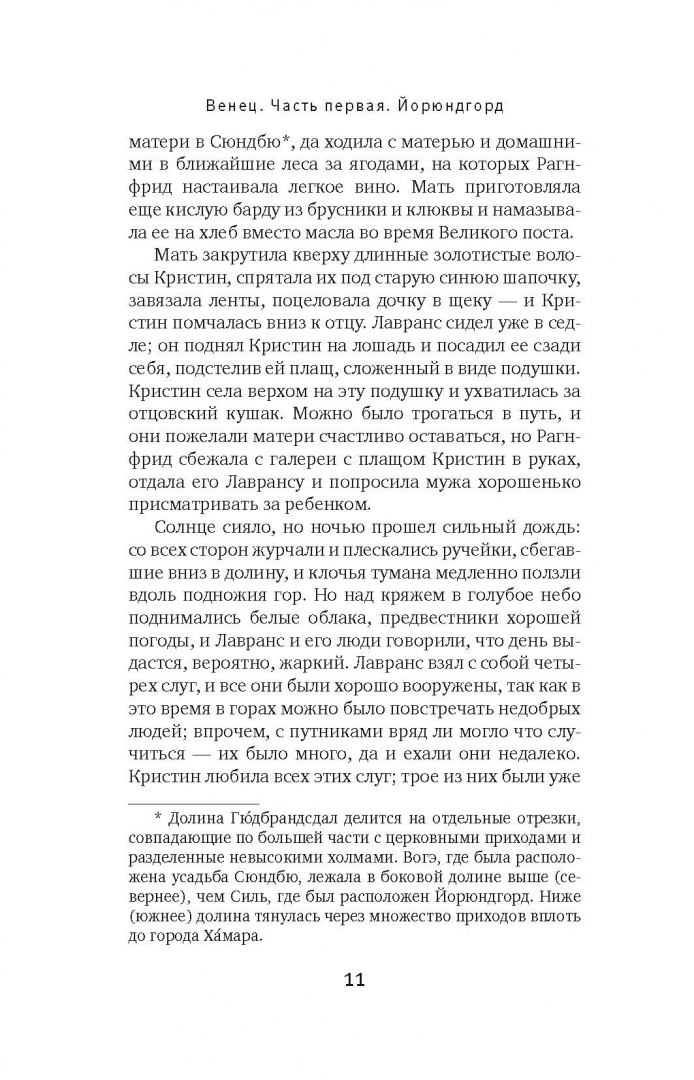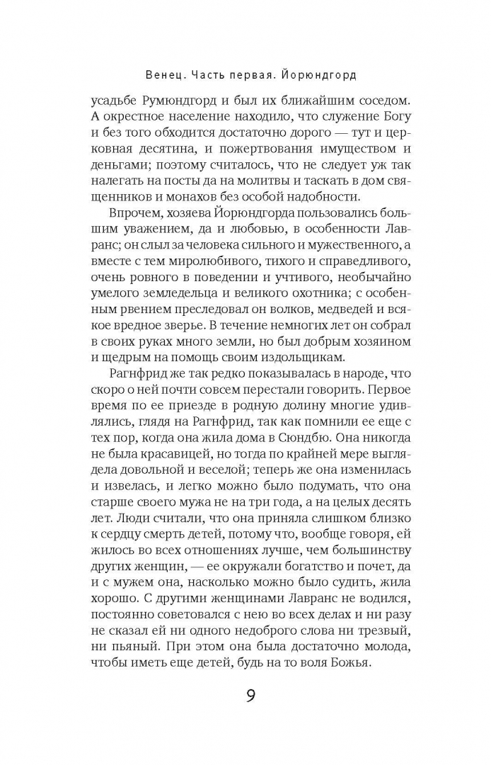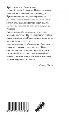 ОписаниеНорвежская писательница Сигрид Унсет (1882-1949) была удостоена Нобелевской премии по литературе с формулировкой "за совершенное изображение норвежского средневековья". Действие исторической трилогии "Кристин, дочь Лавранса" происходит в средневековой Норвегии. В центре повествования история жизни Кристин, дочери уважаемого и состоятельного хозяина усадьбы Йорюндгорд, связавшей судьбу с легкомысленным рыцарем Эрлендом. Это история о любви и верности, и той высокой цене, что порой приходится платить за исполнение желаний. В книгу вошла первая часть трилогии под названием "Венец" (1920). В ней рассказывается о детстве и взрослении Кристин, ее семье, а также о внезапно вспыхнувшей страсти к рыцарю Эрленду, которому суждено сыграть роковую роль в ее жизни.Кристин жила в Йорюндгорде законной невестой Эрленда. Вместе с матерью пересматривали они все накопленное для Кристин приданое, стараясь еще больше увеличить вороха постельного белья и платья, потому что Лавранс ничего не хотел жалеть, раз уж он решил отдать свою дочь владельцу Хюсабю. Кристин сама себе удивлялась: отчего она теперь не радуется? Но по-настоящему вообще никто не радовался в Йорюндгорде, несмотря на все оживление и суету… Сама же она едва ли обменялась с Эрлендом и десятью словами с глазу на глаз. И было странно и непривычно сидеть рядом на глазах у всех людей; теперь им почти не о чем было говорить, потому что прежде между ними было так много скрытого и тайного.Сигрид УнсетСвернутьНорвежская писательница Сигрид Унсет (1882-1949) была удостоена Нобелевской премии по литературе с формулировкой "за совершенное изображение норвежского средневековья". Действие исторической трилогии "Кристин, дочь Лавранса" происходит в средневековой Норвегии. В центре повествования история жизни Кристин, дочери уважаемого и состоятельного хозяина усадьбы Йорюндгорд, связавшей судьбу с легкомысленным рыцарем Эрлендом. Это история о любви и верности, и той высокой цене, что порой приходится платить за исполнение желаний. В книгу вошла первая часть трилогии под названием "Венец" (1920). В ней рассказывается о детстве и взрослении Кристин, ее семье, а также о внезапно вспыхнувшей страсти к рыцарю Эрленду, которому суждено сыграть роковую роль в ее жизни.Кристин жила в Йорюндгорде законной невестой Эрленда. Вместе с матерью пересматривали они все накопленное для Кристин приданое, стараясь еще больше увеличить вороха постельного белья и платья, потому что Лавранс ничего не хотел жалеть, раз уж он решил отдать свою дочь владельцу Хюсабю. Кристин сама себе удивлялась: отчего она теперь не радуется? Но по-настоящему вообще никто не радовался в Йорюндгорде, несмотря на все оживление и суету… Сама же она едва ли обменялась с Эрлендом и десятью словами с глазу на глаз. И было странно и непривычно сидеть рядом на глазах у всех людей; теперь им почти не о чем было говорить, потому что прежде между ними было так много скрытого и тайного.Сигрид УнсетСвернутьСвернуть