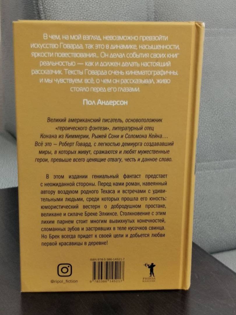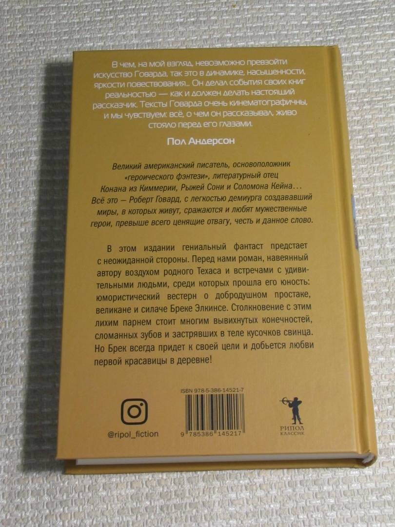 ОписаниеИдея этого уморительного вестерна была навеяна Роберту Говарду атмосферой родного Техаса и встречами с замечательными людьми: великий писатель еще застал настоящих ковбоев начала XX столетия! Верзила Брек Элкинс - самый сильный парень на селе, но вместе с тем добродушный простак: да его ребенок вокруг пальца обведет! Однако Брек всегда придет к своей цели - поможет слабым, покарает злодеев, принесет в родные края свет просвещения и добьется любви первой красавицы в округе! Другой вопрос - в какую он на сей раз попадет передрягу и сколько при этом пострадает человек. Роман, не издававшийся в России более четверти века, представлен в новом переводе. Произведение украшают иллюстрации, специально подготовленные для настоящего издания.Идея этого уморительного вестерна была навеяна Роберту Говарду атмосферой родного Техаса и встречами с замечательными людьми: великий писатель еще застал настоящих ковбоев начала XX столетия! Верзила Брек Элкинс - самый сильный парень на селе, но вместе с тем добродушный простак: да его ребенок вокруг пальца обведет! Однако Брек всегда придет к своей цели - поможет слабым, покарает злодеев, принесет в родные края свет просвещения и добьется любви первой красавицы в округе! Другой вопрос - в какую он на сей раз попадет передрягу и сколько при этом пострадает человек. Роман, не издававшийся в России более четверти века, представлен в новом переводе. Произведение украшают иллюстрации, специально подготовленные для настоящего издания.