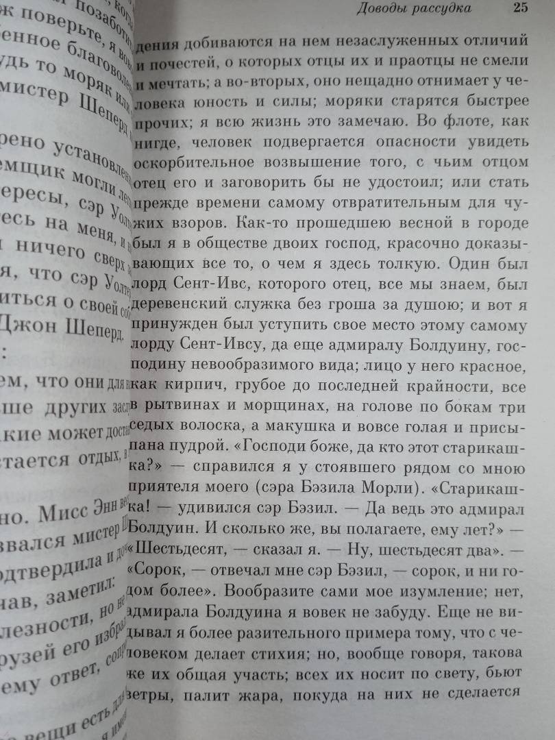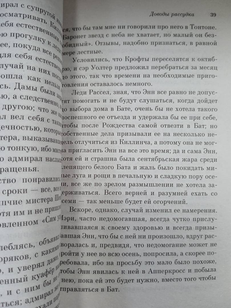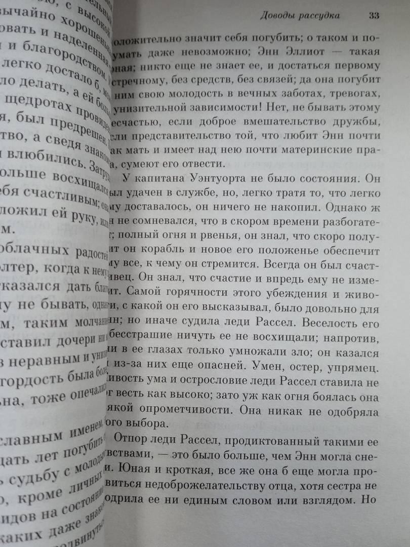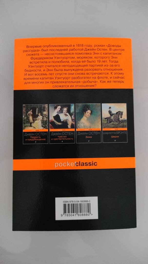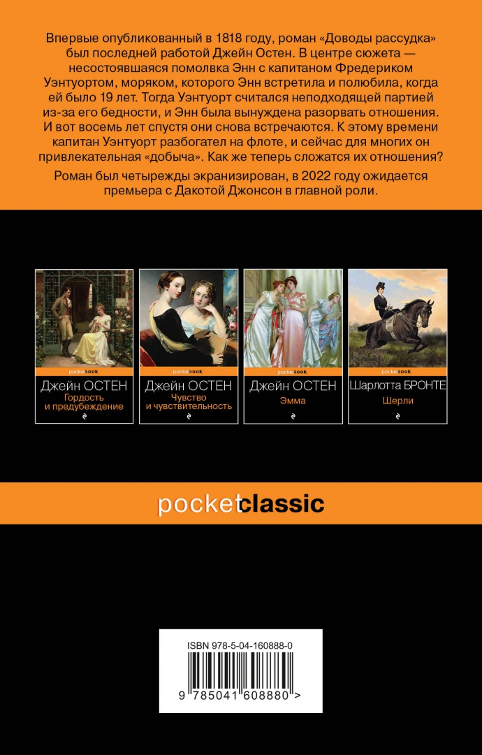 ОписаниеВпервые опубликованный в 1818 году, роман "Доводы рассудка" был последней работой Джейн Остен. Действие происходит в графстве Сомерсет и в Бате.В центре сюжета - несостоявшаяся помолвка Энн с капитаном Фредериком Уэнтуортом, моряком, которого Энн встретила и полюбила, когда ей было 19 лет. Тогда Уэнтуорт считался неподходящей партией из-за его бедности, и Энн была вынуждена разорвать отношения. И вот восемь лет спустя они снова встречаются. К этому времени капитан Уэнтуорт разбогател на флоте, и сейчас для многих он привлекательная "добыча". Как же теперь сложатся их отношения?"Доводы рассудка" порадуют любого читателя тонко прорисованными персонажами, легкой сатирой и очаровательным воссозданием мира английской сельской местности XIX века.В июле 2022 вышла долгожданная экранизация "Доводов рассудка" от Netflix со звездами мирового масштаба в главных ролях ( Дакота Джонсон, Ричардом Грантом, Генри Голдингом) в подлинных британских локациях.Впервые опубликованный в 1818 году, роман "Доводы рассудка" был последней работой Джейн Остен. Действие происходит в графстве Сомерсет и в Бате.В центре сюжета - несостоявшаяся помолвка Энн с капитаном Фредериком Уэнтуортом, моряком, которого Энн встретила и полюбила, когда ей было 19 лет. Тогда Уэнтуорт считался неподходящей партией из-за его бедности, и Энн была вынуждена разорвать отношения. И вот восемь лет спустя они снова встречаются. К этому времени капитан Уэнтуорт разбогател на флоте, и сейчас для многих он привлекательная "добыча". Как же теперь сложатся их отношения?"Доводы рассудка" порадуют любого читателя тонко прорисованными персонажами, легкой сатирой и очаровательным воссозданием мира английской сельской местности XIX века.В июле 2022 вышла долгожданная экранизация "Доводов рассудка" от Netflix со звездами мирового масштаба в главных ролях ( Дакота Джонсон, Ричардом Грантом, Генри Голдингом) в подлинных британских локациях.