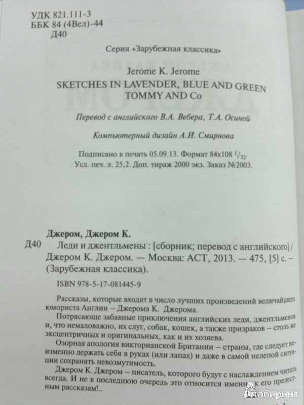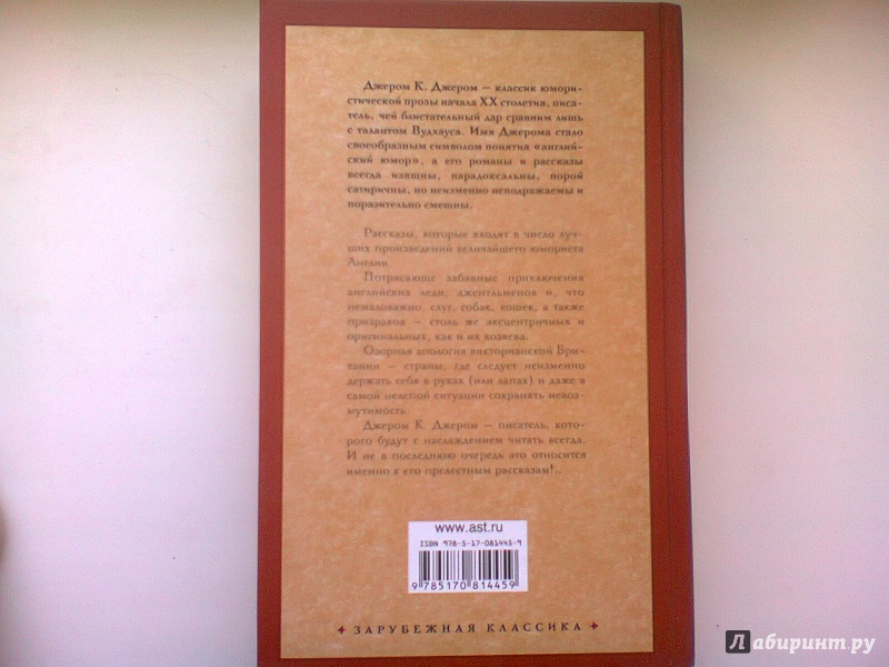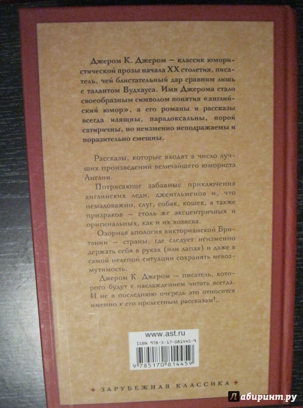 ОписаниеРассказы, которые входят в число лучших произведений величайшего юмориста Англии - Джерома К. Джерома.Потрясающе забавные приключения английских леди, джентльменов и, что немаловажно, их слуг, собак, кошек, а также призраков - столь же эксцентричных и оригинальных, как и их хозяева.Озорная апология викторианской Британии - страны, где следует неизменно держать себя в руках (или лапах) и даже в самой нелепой ситуации сохранять невозмутимость.Джером К. Джером - писатель, которого будут с наслаждением читать всегда. И не в последнюю очередь это относится именно к его прелестным рассказам!..Рассказы, которые входят в число лучших произведений величайшего юмориста Англии - Джерома К. Джерома.Потрясающе забавные приключения английских леди, джентльменов и, что немаловажно, их слуг, собак, кошек, а также призраков - столь же эксцентричных и оригинальных, как и их хозяева.Озорная апология викторианской Британии - страны, где следует неизменно держать себя в руках (или лапах) и даже в самой нелепой ситуации сохранять невозмутимость.Джером К. Джером - писатель, которого будут с наслаждением читать всегда. И не в последнюю очередь это относится именно к его прелестным рассказам!..