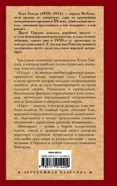 ОписаниеТри самых известных произведения Кнута Гамсуна, в которых наиболее полно отразились основные темы его творчества."Голод" - во многом автобиографичный роман, принесший автору мировую славу. Страшная в своей простоте история молодого непризнанного писателя, день за днем балансирующего на грани голодной смерти. Реальность и причудливые, болезненные фантазии переплетаются в его сознании, мучительно переживающем несоответствие между идеальным и материальным миром…"Пан" - повесть, в которой раскрыта тема свободы человека. Ее главный герой, лейтенант Глан, живущий отшельником в уединенной лесной хижине, оказывается в центре треугольника сложных отношений с двумя очень разными женщинами…"Виктория" - роман о борьбе человеческих чувств, емкий и драматичный сюжет которого повествует о глубокой, мучительной и невозможной любви двух людей из разных сословий - сына мельника Юханнеса и дочери сельского помещика Виктории…Три самых известных произведения Кнута Гамсуна, в которых наиболее полно отразились основные темы его творчества."Голод" - во многом автобиографичный роман, принесший автору мировую славу. Страшная в своей простоте история молодого непризнанного писателя, день за днем балансирующего на грани голодной смерти. Реальность и причудливые, болезненные фантазии переплетаются в его сознании, мучительно переживающем несоответствие между идеальным и материальным миром…"Пан" - повесть, в которой раскрыта тема свободы человека. Ее главный герой, лейтенант Глан, живущий отшельником в уединенной лесной хижине, оказывается в центре треугольника сложных отношений с двумя очень разными женщинами…"Виктория" - роман о борьбе человеческих чувств, емкий и драматичный сюжет которого повествует о глубокой, мучительной и невозможной любви двух людей из разных сословий - сына мельника Юханнеса и дочери сельского помещика Виктории…