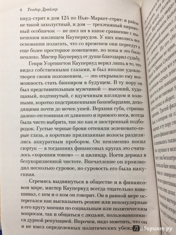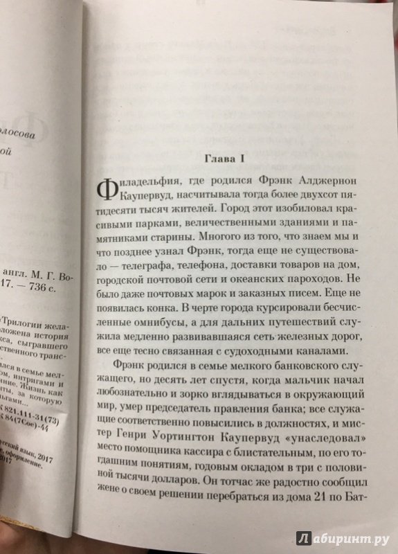 Описание"Финансист" - первая часть знаменитой "Трилогии желания" Теодора Драйзера, в основу которой положена история жизни американского миллионера Ч. Йеркса, сыгравшего значительную роль в разработке системы общественного транспорта в Чикаго и Лондонского метрополитена. Главный герой - Фрэнк Каупервуд - родился в семье мелкого банковского служащего, но своим трудом, интригами и беспринципностью заработал огромное состояние. Жизнь как воплощение пресловутой американской мечты, за которую приходится дорого заплатить. И не только деньгами…"Финансист" - первая часть знаменитой "Трилогии желания" Теодора Драйзера, в основу которой положена история жизни американского миллионера Ч. Йеркса, сыгравшего значительную роль в разработке системы общественного транспорта в Чикаго и Лондонского метрополитена. Главный герой - Фрэнк Каупервуд - родился в семье мелкого банковского служащего, но своим трудом, интригами и беспринципностью заработал огромное состояние. Жизнь как воплощение пресловутой американской мечты, за которую приходится дорого заплатить. И не только деньгами…