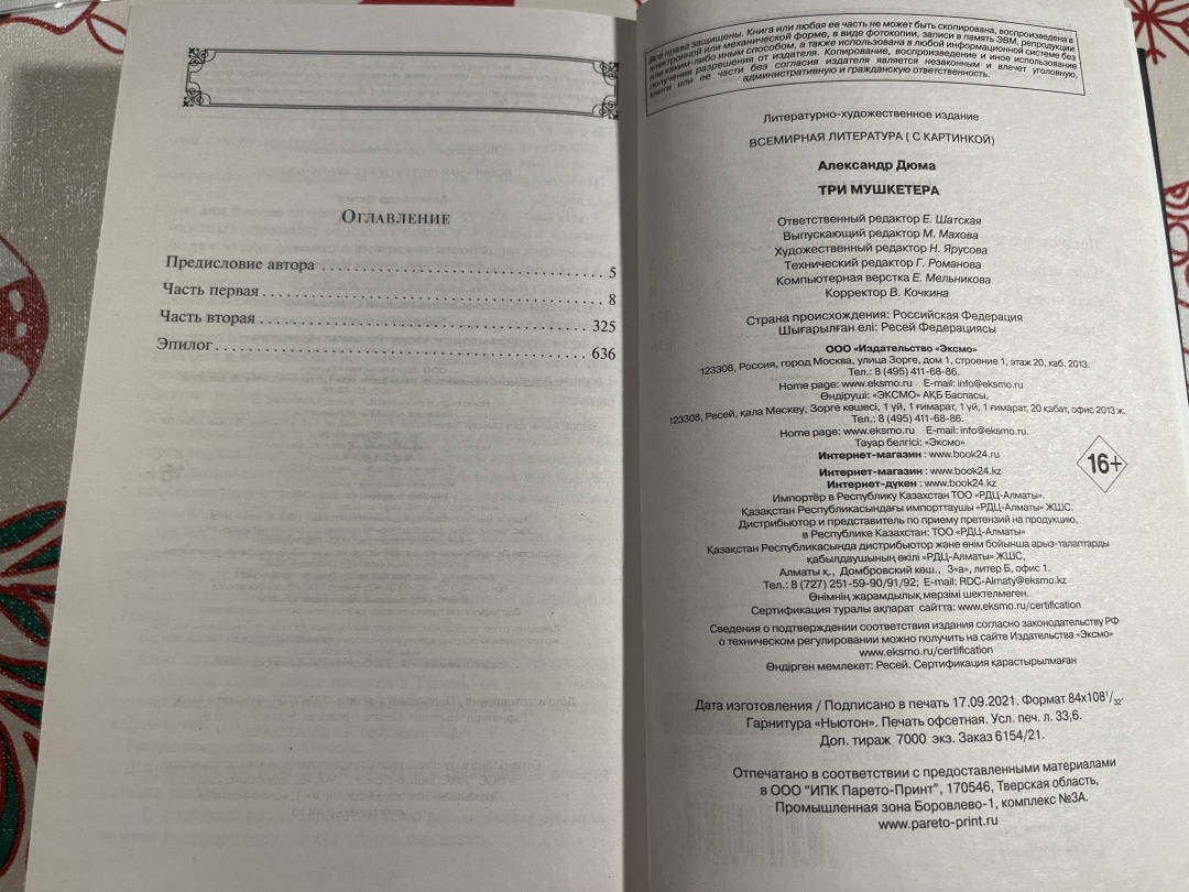 Объем, стр. 640 ISBN 978-5-04-118356-1 Автор Дюма Александр, Лившиц Дебора, Вальдман В., Ксанина К. Переводчик Лившиц Дебора, Вальдман В., Ксанина К. Серия Всемирная литература (новое оформление) Минимальный возраст 16+ Год издания книги 2021 Тип обложки Твердый переплет Иллюстрации Без иллюстраций Вес, г 446г Размеры 207х135х29 мм - Отзывы