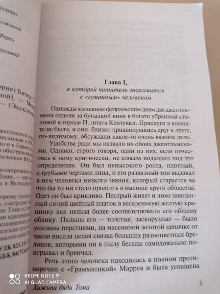 Описание«Хижина дяди Тома» — главный роман о жестокости и несправедливости американского рабовладения, написанный в XIX веке. Книга, которая произвела не только в США, но и в Европе настоящий эффект разорвавшейся бомбы, до предела обострив аболиционистские настроения, и вызвала на рабовладельческом Юге совершенно звериную ярость.Международный бестселлер номер один позапрошлого столетия, уступивший по продаваемости только Библии, — уже первый тираж в США составил 300 000 экземпляров, а в Великобритании перевалил за миллион.Возраст этой книги подбирается уже ко второму столетию, но современный читатель и теперь, как и когда-то, сострадает горестной судьбе доброго и честного чернокожего дяди Тома и с замиранием сердца следит за опасными приключениями красавицы-квартеронки Элизы и ее отважного мужа Джорджа, решившихся, рискуя жизнью, бежать и пуститься через всю страну в далекий путь в Канаду, чтобы спасти от ужасной участи своего маленького сына Гарри…«Хижина дяди Тома» — главный роман о жестокости и несправедливости американского рабовладения, написанный в XIX веке. Книга, которая произвела не только в США, но и в Европе настоящий эффект разорвавшейся бомбы, до предела обострив аболиционистские настроения, и вызвала на рабовладельческом Юге совершенно звериную ярость.Международный бестселлер номер один позапрошлого столетия, уступивший по продаваемости только Библии, — уже первый тираж в США составил 300 000 экземпляров, а в Великобритании перевалил за миллион.Возраст этой книги подбирается уже ко второму столетию, но современный читатель и теперь, как и когда-то, сострадает горестной судьбе доброго и честного чернокожего дяди Тома и с замиранием сердца следит за опасными приключениями красавицы-квартеронки Элизы и ее отважного мужа Джорджа, решившихся, рискуя жизнью, бежать и пуститься через всю страну в далекий путь в Канаду, чтобы спасти от ужасной участи своего маленького сына Гарри…