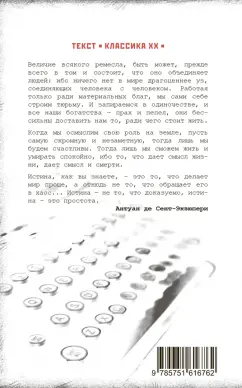 ОписаниеИмя писателя Антуана де Сент-Экзюпери (1900-1944) известно всем. Говорят, однако, что не будь летчика Сент-Экзюпери, не было бы и писателя... В книгу вошли два произведения: сборник очерков "Планета людей" (1939) и роман "Ночной полет" (1930), переведенные выдающимися представителями отечественной школы перевода Норой Галь и Морисом Ваксмахером.Величие всякого ремесла, быть может, прежде всего в том и состоит, что оно объединяет людей: ибо ничего нет в мире драгоценнее уз, соединяющих человека с человеком. Работая только ради материальных благ, мы сами себе строим тюрьму. И запираемся в одиночестве, и все наши богатства - прах и пепел, они бессильны доставить нам то, ради чего стоит жить. Когда мы осмыслим свою роль на земле, пусть самую скромную и незаметную, тогда лишь мы будем счастливы. Тогда лишь мы сможем жить и умирать спокойно, ибо то, что дает смысл жизни, дает смысл и смерти. Истина, как вы знаете, - это то, что делает мир проще, а отнюдь не то, что обращает его в хаос... Истина - не то, что доказуемо, истина - это простота.