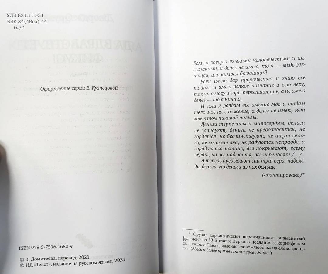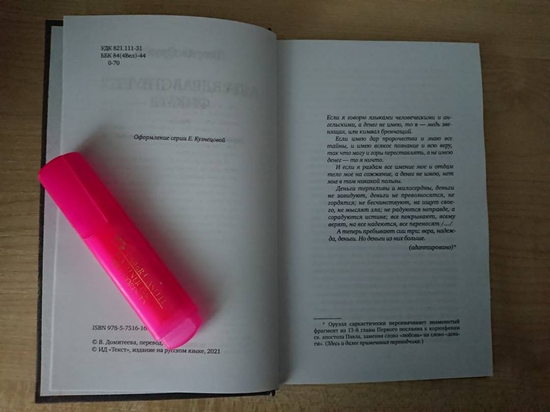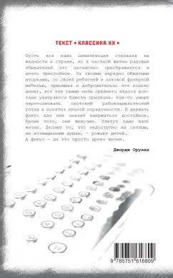 Объем, стр. 256 ISBN 978-5-7516-1680-9 Автор Оруэлл Джордж, Домитеева Вера Михайловна Переводчик Домитеева Вера Михайловна Серия Классика ХХ Минимальный возраст 16+ Год издания книги 2021 Тип обложки Твердый переплет Иллюстрации Без иллюстраций Вес, г 286г Размеры 208х132х16 мм - Отзывы