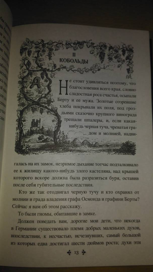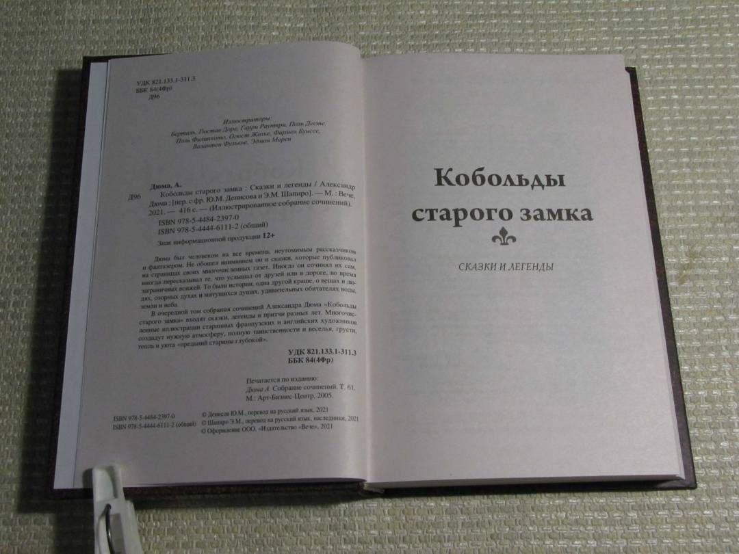 ОписаниеДюма был человеком на все времена, неутомимым рассказчиком и фантазером. Не обошел вниманием он и сказки, которые публиковал на страницах своих многочисленных газет. Иногда он сочинял их сам, иногда пересказывал те, что услышал от друзей или в дороге, во время заграничных вояжей. То были истории, одна другой краше, о вещах и людях, озорных духах и мятущихся душах, удивительных обитателях воды, земли и неба. В очередной том собрания сочинений Александра Дюма "Кобольды старого замка" входят сказки, легенды и притчи разных лет. Многочисленные иллюстрации старинных французских и английских художников создадут нужную атмосферу, полную таинственности и веселья, грусти, тепла и уюта "преданий старины глубокой".Дюма был человеком на все времена, неутомимым рассказчиком и фантазером. Не обошел вниманием он и сказки, которые публиковал на страницах своих многочисленных газет. Иногда он сочинял их сам, иногда пересказывал те, что услышал от друзей или в дороге, во время заграничных вояжей. То были истории, одна другой краше, о вещах и людях, озорных духах и мятущихся душах, удивительных обитателях воды, земли и неба. В очередной том собрания сочинений Александра Дюма "Кобольды старого замка" входят сказки, легенды и притчи разных лет. Многочисленные иллюстрации старинных французских и английских художников создадут нужную атмосферу, полную таинственности и веселья, грусти, тепла и уюта "преданий старины глубокой".