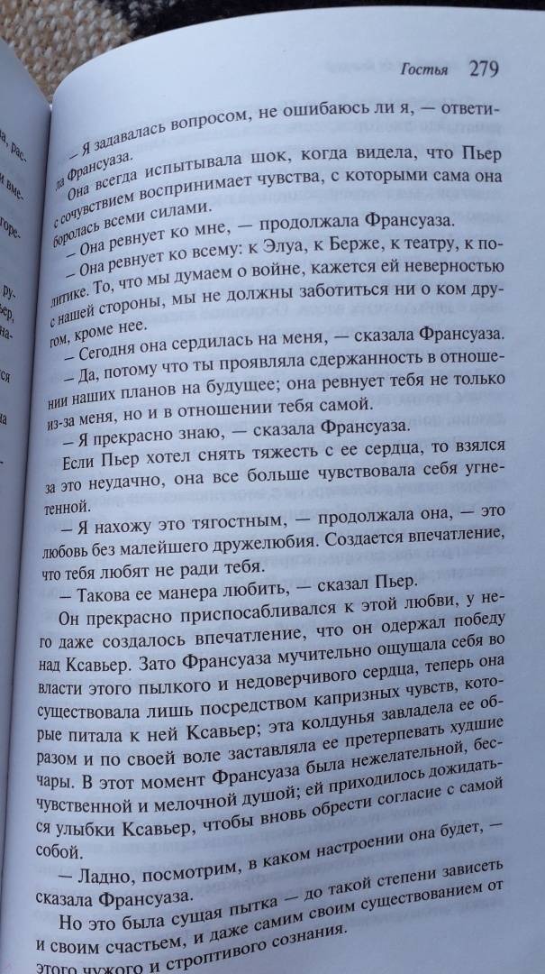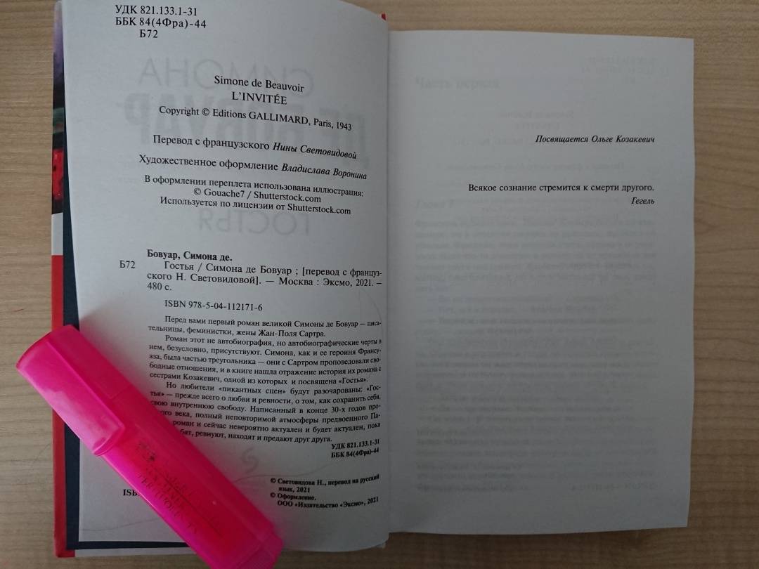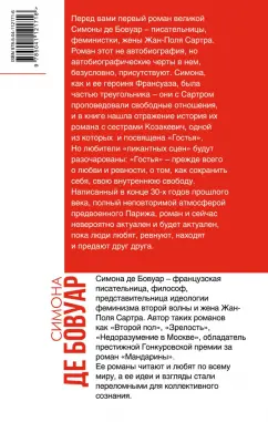 ОписаниеПеред вами первый роман великой Симоны де Бовуар - писательницы, феминистки, жены Жан-Поля Сартра.Роман этот не автобиография, но автобиографические черты в нем, безусловно, присутствуют. Симона, как и ее героиня Франсуаза, была частью треугольника - они с Сартром проповедовали свободные отношения, и в книге нашла отражение история их романа с сестрами Козакевич, одной из которых и посвящена "Гостья".Но любители "пикантных сцен" будут разочарованы: "Гостья" - прежде всего о любви и ревности, о том, как сохранить себя, свою внутреннюю свободу. Написанный в конце 30-х годов прошлого века, полный неповторимой атмосферой предвоенного Парижа, роман и сейчас невероятно актуален и будет актуален, пока люди любят, ревнуют, находят и предают друг друга.Перед вами первый роман великой Симоны де Бовуар - писательницы, феминистки, жены Жан-Поля Сартра.Роман этот не автобиография, но автобиографические черты в нем, безусловно, присутствуют. Симона, как и ее героиня Франсуаза, была частью треугольника - они с Сартром проповедовали свободные отношения, и в книге нашла отражение история их романа с сестрами Козакевич, одной из которых и посвящена "Гостья".Но любители "пикантных сцен" будут разочарованы: "Гостья" - прежде всего о любви и ревности, о том, как сохранить себя, свою внутреннюю свободу. Написанный в конце 30-х годов прошлого века, полный неповторимой атмосферой предвоенного Парижа, роман и сейчас невероятно актуален и будет актуален, пока люди любят, ревнуют, находят и предают друг друга.