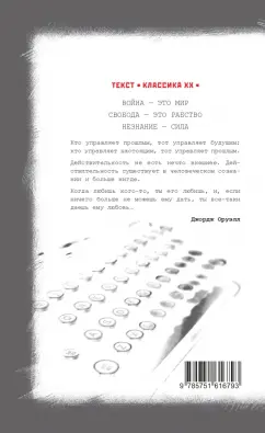 ОписаниеПрошло всего три года после окончания Второй мировой войны, когда Джордж Оруэлл (1903-1950) написал самое знаменитое свое произведение - роман-антиутопию "1984". Многое из того, о чем писал Джордж Оруэлл, покажется вам до безумия знакомым. Некоторые исследователи считают, что ни один западный читатель не постигнет суть "1984" так глубоко, как человек родом из Советского Союза.Война - это мирСвобода - это рабствоНезнание - силаКто управляет прошлым, тот управляет будущим; кто управляет настоящим, тот управляет прошлым. Действительность не есть нечто внешнее. Действительность существует в человеческом сознании и больше нигде.Когда любишь кого-то, ты его любишь, и, если ничего больше не можешь ему дать, ты все-таки даешь ему любовь…Джордж ОруэллПрошло всего три года после окончания Второй мировой войны, когда Джордж Оруэлл (1903-1950) написал самое знаменитое свое произведение - роман-антиутопию "1984". Многое из того, о чем писал Джордж Оруэлл, покажется вам до безумия знакомым. Некоторые исследователи считают, что ни один западный читатель не постигнет суть "1984" так глубоко, как человек родом из Советского Союза.Война - это мирСвобода - это рабствоНезнание - силаКто управляет прошлым, тот управляет будущим; кто управляет настоящим, тот управляет прошлым. Действительность не есть нечто внешнее. Действительность существует в человеческом сознании и больше нигде.Когда любишь кого-то, ты его любишь, и, если ничего больше не можешь ему дать, ты все-таки даешь ему любовь…Джордж Оруэлл