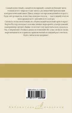 ОписаниеСамый известный, самый популярный, самый любимый читателями всего мира вот уже много десятилетий британский юмористический цикл. Цикл, каждое из произведений которого, будь оно романом, повестью или рассказом - настоящий эталон неподражаемого английского юмора. Снова и снова непутевый, но обаятельный шалопай-аристократ Берти Вустер попадает в немыслимые передряги, а хитроумный камердинер-эрудит Дживс помогает ему выпутаться из, казалось бы, совершенно безвыходного положения. Ну, а мы снова и снова перечитываем истории их приключений и каждый раз смеемся, будто читаем их впервые!..Самый известный, самый популярный, самый любимый читателями всего мира вот уже много десятилетий британский юмористический цикл. Цикл, каждое из произведений которого, будь оно романом, повестью или рассказом - настоящий эталон неподражаемого английского юмора. Снова и снова непутевый, но обаятельный шалопай-аристократ Берти Вустер попадает в немыслимые передряги, а хитроумный камердинер-эрудит Дживс помогает ему выпутаться из, казалось бы, совершенно безвыходного положения. Ну, а мы снова и снова перечитываем истории их приключений и каждый раз смеемся, будто читаем их впервые!..