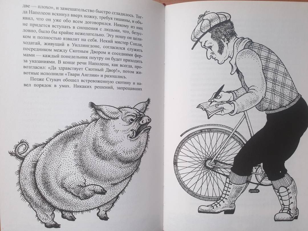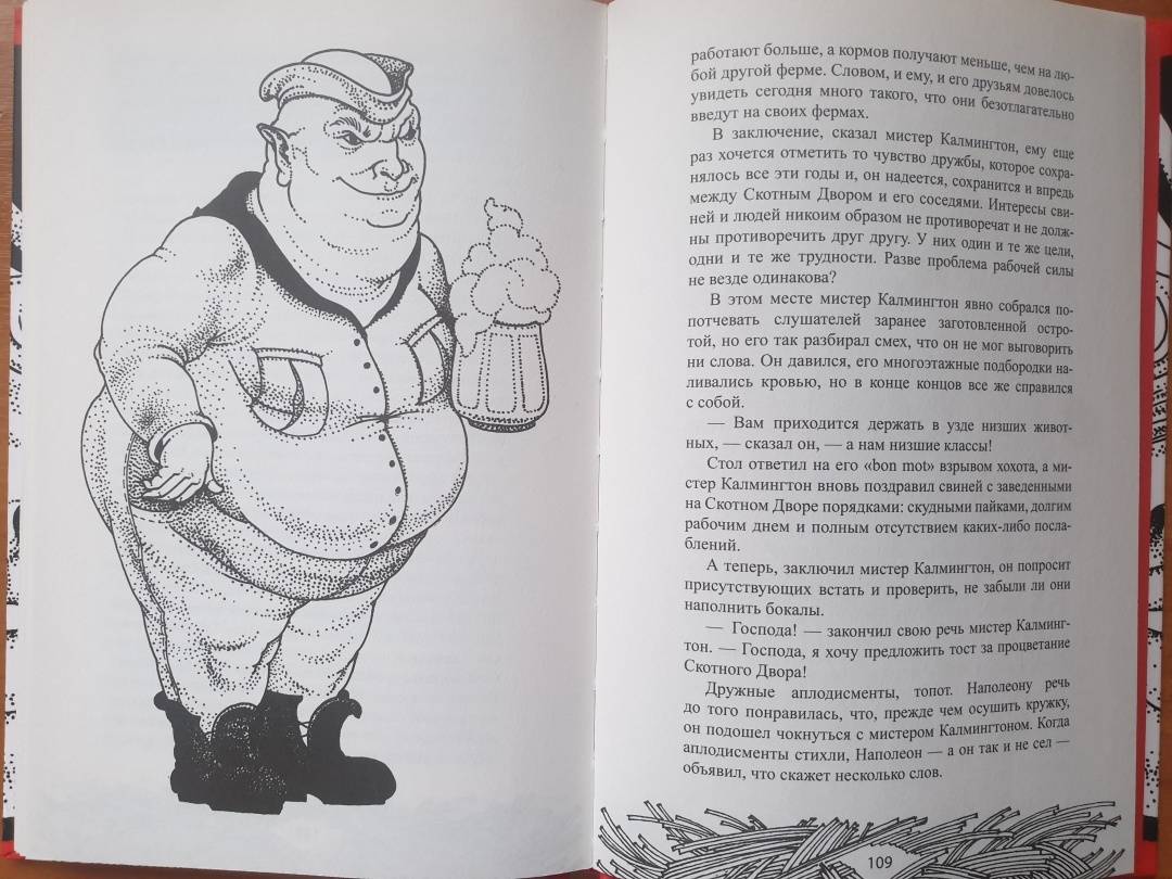 ОписаниеВсе началось с того, что старый хряк Главарь призвал домашний скот восстать против хозяев-эксплуататоров и взять управление фермой в свои лапы. Заманчивая идея, которая была с энтузиазмом подхвачена и с успехом реализована. Отныне все животные равны и трудятся на благо друг друга... Вот только надолго ли?Острая, пропитанная мудростью притча британского писателя Джорджа Оруэлла (1903-1950). Великолепные образы, хлесткий язык, тонкая сатира... Блестящая интерпретация того, как "всеобщие свобода, равенство, братство" могут исподволь и незаметно перерасти 6 тоталитарный режим и беспредел правящей верхушки.Все началось с того, что старый хряк Главарь призвал домашний скот восстать против хозяев-эксплуататоров и взять управление фермой в свои лапы. Заманчивая идея, которая была с энтузиазмом подхвачена и с успехом реализована. Отныне все животные равны и трудятся на благо друг друга... Вот только надолго ли?Острая, пропитанная мудростью притча британского писателя Джорджа Оруэлла (1903-1950). Великолепные образы, хлесткий язык, тонкая сатира... Блестящая интерпретация того, как "всеобщие свобода, равенство, братство" могут исподволь и незаметно перерасти 6 тоталитарный режим и беспредел правящей верхушки.