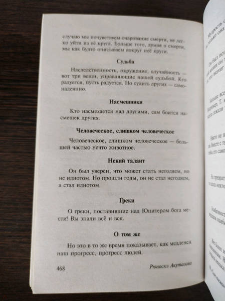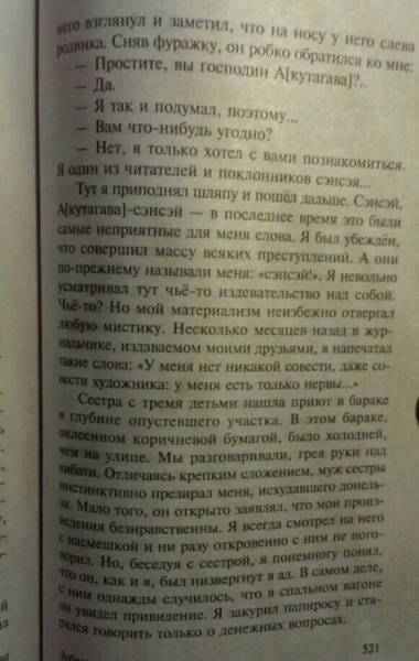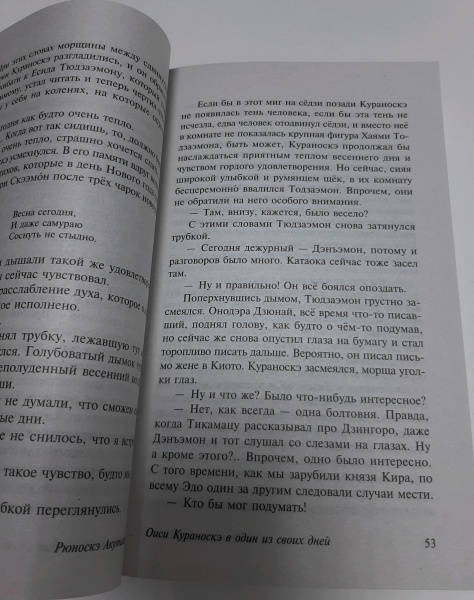 ОписаниеВ этот сборник вошли как принесшие Акутагаве мировую славу и автоматически ассоциирующиеся с его именем исторические рассказы и новеллы (включая легендарную "В чаще", послужившую основой для сценария бессмертного фильма "Расёмон" Куросавы), так и менее известные западному читателю, но почитающиеся на родине автора еще выше рассказы, действие которых происходит на фоне современной автору реальности Японии начала ХХ века, еще сохраняющей немало черт национального своеобразия, но жадно и стремительно "европеизирующейся". Отдельного упоминания заслуживают постоянно возникающие в творчестве Акутагавы реминисценции с классической русской литературой, которой он беспредельно восхищался и в которой наряду с родной историей нашел неисчерпаемый источник вдохновения.В этот сборник вошли как принесшие Акутагаве мировую славу и автоматически ассоциирующиеся с его именем исторические рассказы и новеллы (включая легендарную "В чаще", послужившую основой для сценария бессмертного фильма "Расёмон" Куросавы), так и менее известные западному читателю, но почитающиеся на родине автора еще выше рассказы, действие которых происходит на фоне современной автору реальности Японии начала ХХ века, еще сохраняющей немало черт национального своеобразия, но жадно и стремительно "европеизирующейся". Отдельного упоминания заслуживают постоянно возникающие в творчестве Акутагавы реминисценции с классической русской литературой, которой он беспредельно восхищался и в которой наряду с родной историей нашел неисчерпаемый источник вдохновения.