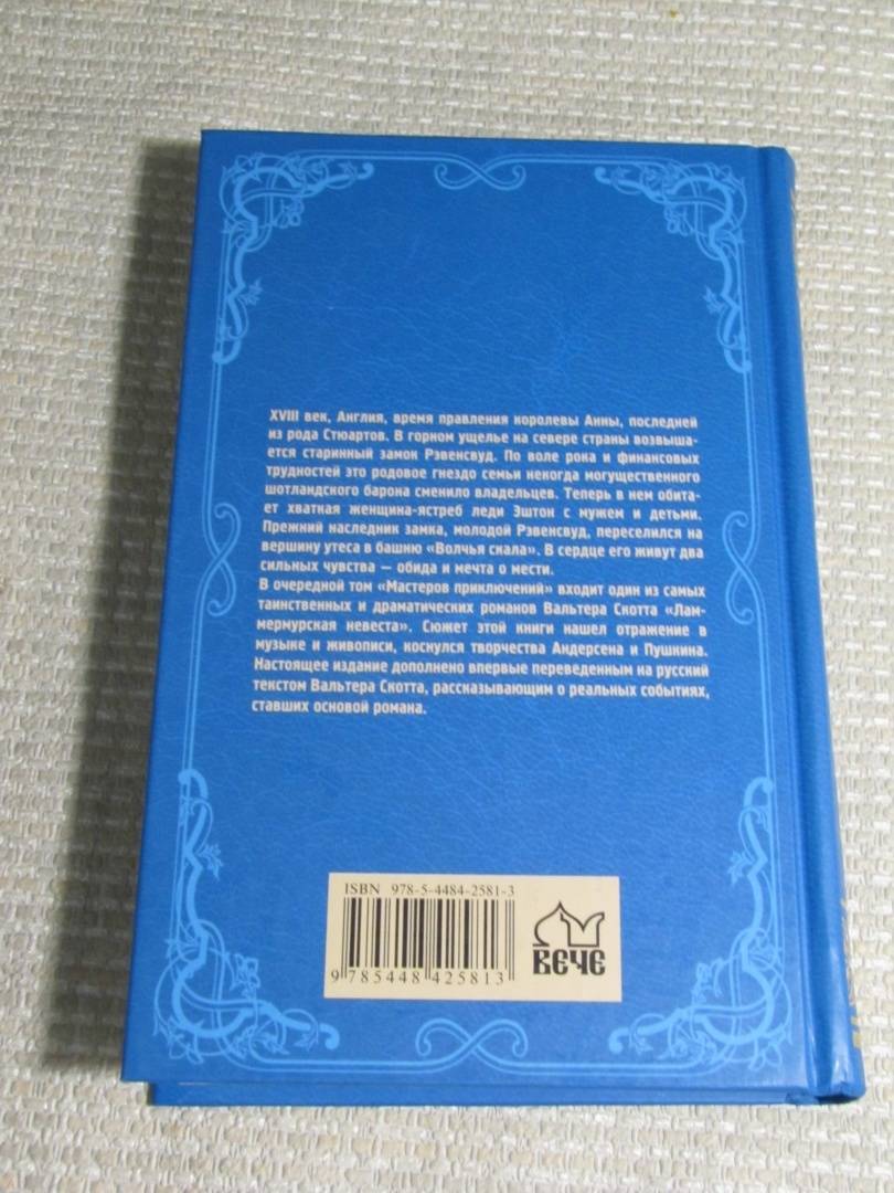 ОписаниеXVIII век, Англия, время правления королевы Анны, последней из рода Стюартов. В горном ущелье на севере страны возвышается старинный замок Рэвенсвуд. По воле рока и финансовых трудностей это родовое гнездо семьи некогда могущественного шотландского барона сменило владельцев. Теперь в нем обитает хваткая женщина-ястреб леди Эштон с мужем и детьми. Прежний наследник замка, молодой Рэвенсвуд, переселился на вершину утеса в башню «Волчья скала». В сердце его живут два сильных чувства — обида и мечта о мести.В очередной том «Мастеров приключений» входит один из самых таинственных и драматических романов Вальтера Скотта «Ламмермурская невеста». Сюжет этой книги нашел отражение в музыке и живописи, коснулся творчества Андерсена и Пушкина. Настоящее издание дополнено впервые переведенным на русский текстом Вальтера Скотта, рассказывающим о реальных событиях, ставших основой романа.XVIII век, Англия, время правления королевы Анны, последней из рода Стюартов. В горном ущелье на севере страны возвышается старинный замок Рэвенсвуд. По воле рока и финансовых трудностей это родовое гнездо семьи некогда могущественного шотландского барона сменило владельцев. Теперь в нем обитает хваткая женщина-ястреб леди Эштон с мужем и детьми. Прежний наследник замка, молодой Рэвенсвуд, переселился на вершину утеса в башню «Волчья скала». В сердце его живут два сильных чувства — обида и мечта о мести.В очередной том «Мастеров приключений» входит один из самых таинственных и драматических романов Вальтера Скотта «Ламмермурская невеста». Сюжет этой книги нашел отражение в музыке и живописи, коснулся творчества Андерсена и Пушкина. Настоящее издание дополнено впервые переведенным на русский текстом Вальтера Скотта, рассказывающим о реальных событиях, ставших основой романа.