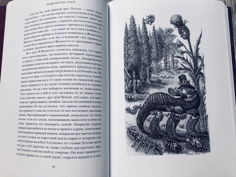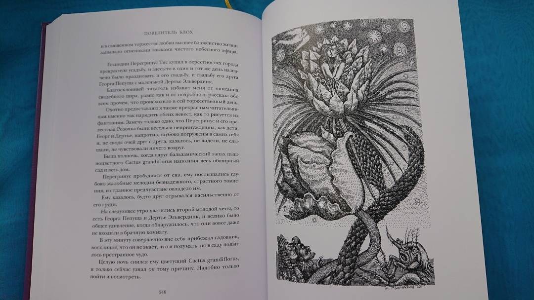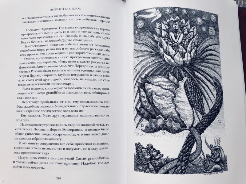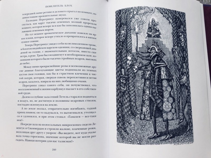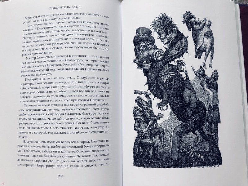 Описание"Повелитель блох" (1822) - одно из последних произведений великого немецкого писателя Э. Т. А. Гофмана (1776-1822). Как и во всех его сказках, здесь мир чудесного тесно переплетен с реальной жизнью, а образы мифической страны - с картинами современного автору немецкого города. На этот раз свойственная Гофману злая ирония в изображении его эпохи, в частности едкая критика прусского судопроизводства в лице тайного советника Кнаррпанти, была настолько очевидна, что это повлекло за собой судебное преследование автора и существенные цензурные изъятия из текста, так что в полном виде произведение увидело свет лишь в 1908 г. В этой "безумной и причудливейшей из всех сказок", как назвал ее сам Гофман, несмотря на свойственную романтизму устремленность в высокие сферы духа, влечение ко всему таинственному и чудесному, реальность выходит на первый план и реальная, земная возлюбленная Перегринуса Тиса Розочка Лэммерхирт одерживает верх над идеальной принцессой Гамахеей. Послесловие и комментарии подготовлены известным литературоведом А. Б. Ботниковой. Цикл иллюстраций к "Повелителю блох" известного петербургского художника Михаила Гавричкова создан специально для этого издания и публикуется впервые.Свернуть"Повелитель блох" (1822) - одно из последних произведений великого немецкого писателя Э. Т. А. Гофмана (1776-1822). Как и во всех его сказках, здесь мир чудесного тесно переплетен с реальной жизнью, а образы мифической страны - с картинами современного автору немецкого города. На этот раз свойственная Гофману злая ирония в изображении его эпохи, в частности едкая критика прусского судопроизводства в лице тайного советника Кнаррпанти, была настолько очевидна, что это повлекло за собой судебное преследование автора и существенные цензурные изъятия из текста, так что в полном виде произведение увидело свет лишь в 1908 г. В этой "безумной и причудливейшей из всех сказок", как назвал ее сам Гофман, несмотря на свойственную романтизму устремленность в высокие сферы духа, влечение ко всему таинственному и чудесному, реальность выходит на первый план и реальная, земная возлюбленная Перегринуса Тиса Розочка Лэммерхирт одерживает верх над идеальной принцессой Гамахеей. Послесловие и комментарии подготовлены известным литературоведом А. Б. Ботниковой. Цикл иллюстраций к "Повелителю блох" известного петербургского художника Михаила Гавричкова создан специально для этого издания и публикуется впервые.СвернутьСвернуть