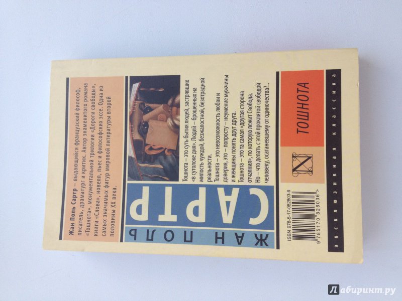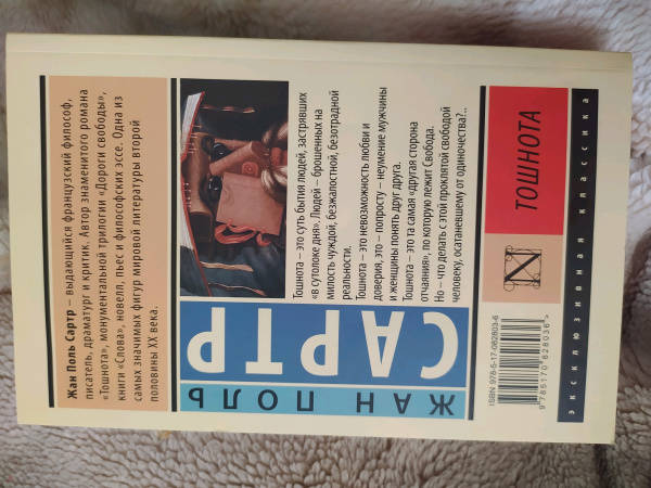 Объем, стр. 320 ISBN 978-5-17-082803-6 Автор Сартр Жан-Поль, Яхнина Юлиана Яковлевна Переводчик Яхнина Юлиана Яковлевна Серия Эксклюзивная классика Язык Русский Минимальный возраст 16+ Год издания книги 2022 Тип обложки Мягкий переплет Иллюстрации Без иллюстраций Вес, г 210г Размеры 180х117х18 мм - Отзывы