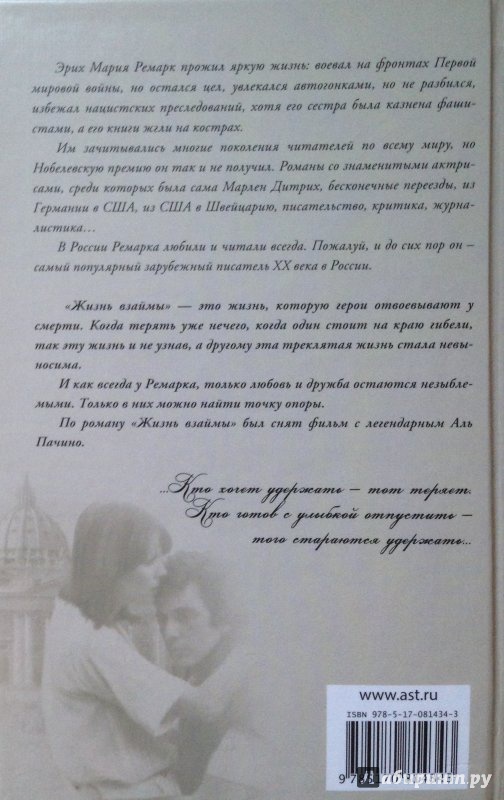 --Эрих Ремарк: Жизнь взаймыРусская классическая и современная литератураДетектив. Остросюжетная литератураЗарубежная художественная литератураРусская художественная литератураФэнтезиДраматургияПоэзияПриключенияФантастикаЭпос и фольклорКлассическая прозаАфоризмыИсторическая прозаДетективыБасниСентиментальная прозаОтечественный боевикСовременная прозаМолодежная литератураЗарубежная классическая и современная литература