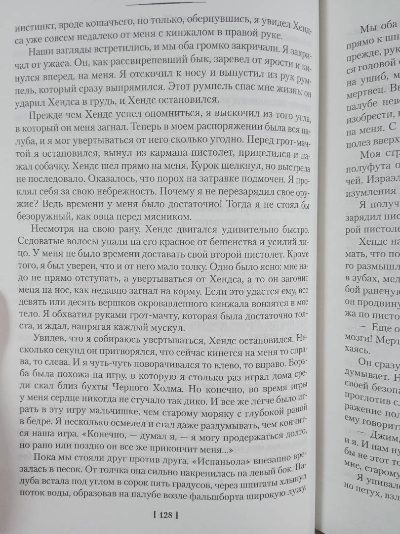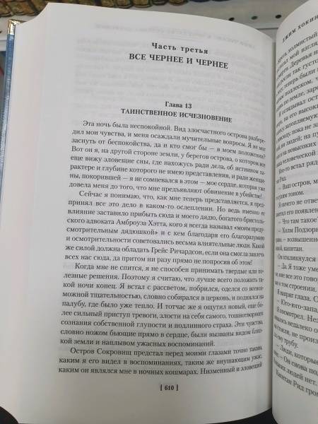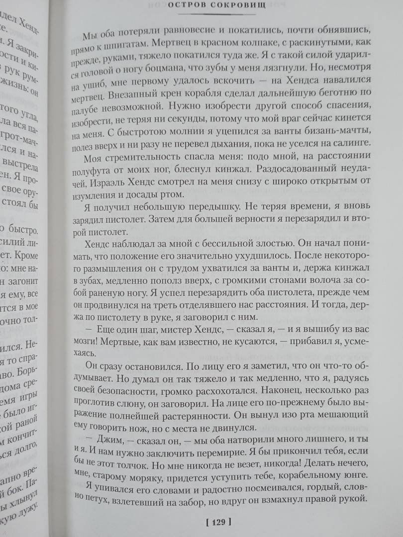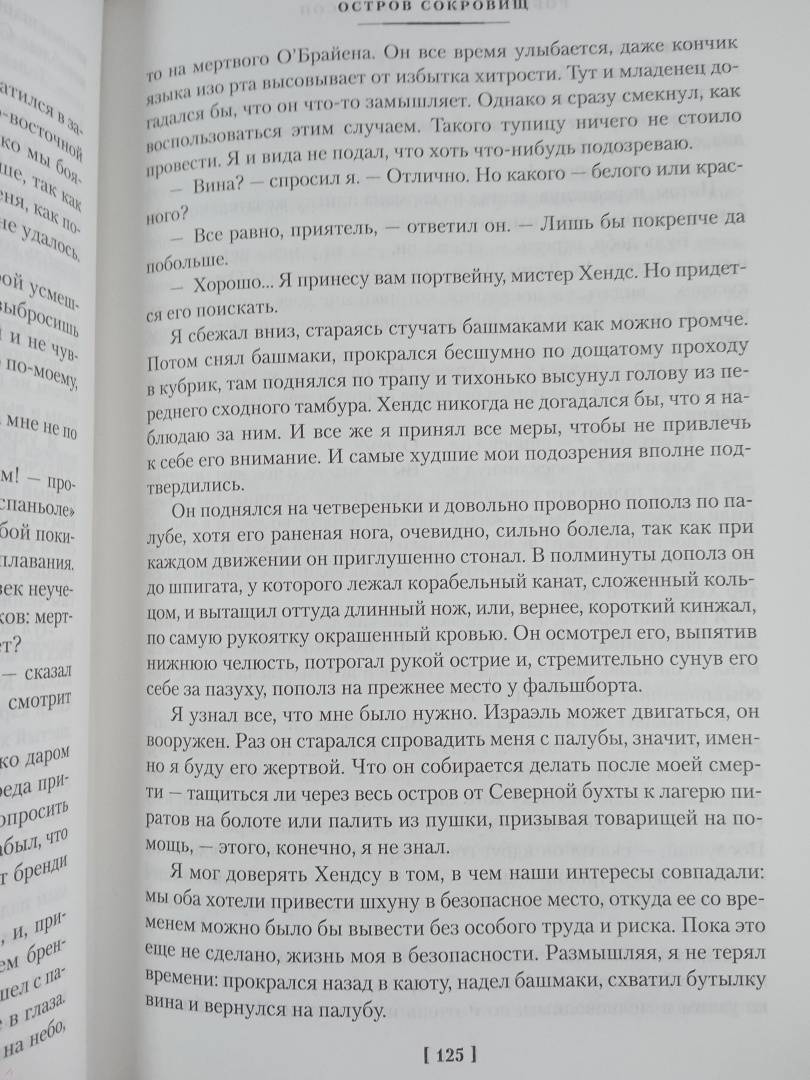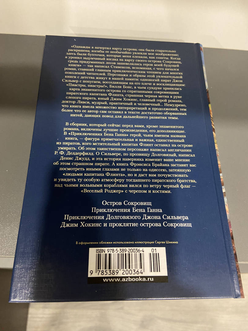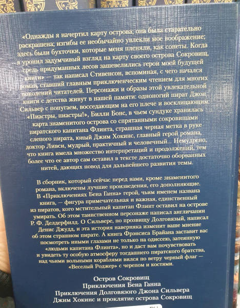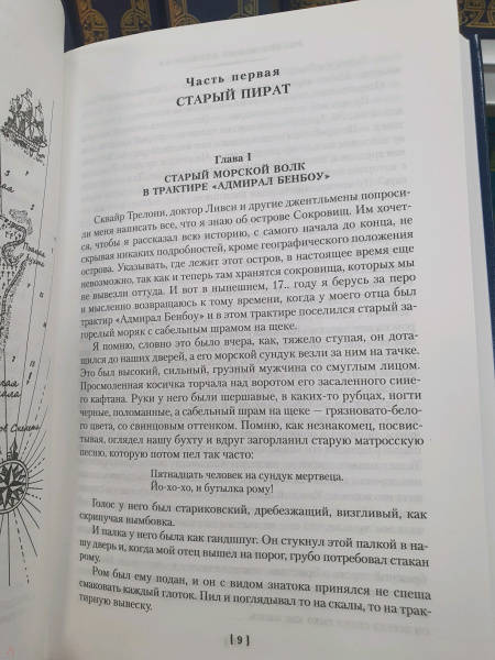 Описание«Однажды я начертил карту острова; она была старательно раскрашена; изгибы ее необычайно увлекли мое воображение; здесь были бухточки, которые меня пленяли, как сонеты. Когда я уронил задумчивый взгляд на карту своего острова Сокровищ, средь придуманных лесов зашевелились герои моей будущей книги» — так написал Стивенсон, вспоминая с чего начался роман, ставший главным приключенческим чтением для многих поколений читателей.Персонажи и образы этой увлекательной книги с детства живут в нашей памяти: одноногий пират Джон Сильвер с попугаем, восседающем на его плече и восклицающим: «Пиастры, пиастры!», Билли Бонс, в чьем сундуке хранилась карта знаменитого острова со спрятанными сокровищами пиратского капитана Флинта, страшная черная метка в руке слепого пирата, юный Джим Хокинс, главный герой романа, доктор Ливси, мудрый, практичный и человечный…Немудрено, что книга имела множество интерпретаций и продолжений, тем более что ее автор сам оставил в тексте достаточно оборванных нитей, дающих повод для дальнейшего развития темы.Свернуть«Однажды я начертил карту острова; она была старательно раскрашена; изгибы ее необычайно увлекли мое воображение; здесь были бухточки, которые меня пленяли, как сонеты. Когда я уронил задумчивый взгляд на карту своего острова Сокровищ, средь придуманных лесов зашевелились герои моей будущей книги» — так написал Стивенсон, вспоминая с чего начался роман, ставший главным приключенческим чтением для многих поколений читателей.Персонажи и образы этой увлекательной книги с детства живут в нашей памяти: одноногий пират Джон Сильвер с попугаем, восседающем на его плече и восклицающим: «Пиастры, пиастры!», Билли Бонс, в чьем сундуке хранилась карта знаменитого острова со спрятанными сокровищами пиратского капитана Флинта, страшная черная метка в руке слепого пирата, юный Джим Хокинс, главный герой романа, доктор Ливси, мудрый, практичный и человечный…Немудрено, что книга имела множество интерпретаций и продолжений, тем более что ее автор сам оставил в тексте достаточно оборванных нитей, дающих повод для дальнейшего развития темы.СвернутьСвернуть