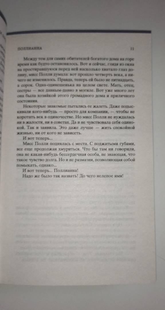 ОписаниеРоман Элинор Портер «Поллианна» рассказывает о печалях и радостях маленькой девочки, которая после смерти папы вынуждена переехать к сварливой тетке, в мир строгих правил и запретов. К счастью, Поллианна успела научиться у папы замечательному умению: не унывать при любых обстоятельствах и даже в самых тяжелых ситуациях находить выход из положения. Впервые изданная в 1913 году, книга стала настоящим бестселлером, была переведена на многие языки и неоднократно экранизировалась. В 1915 году Элинор Портер написала продолжение истории — «Поллианна выросла». Ее героиня повзрослела, но не утратила своего детского восхищения миром. Поллианна по-прежнему считает, что все трудности преодолимы, главное — верить!Роман Элинор Портер «Поллианна» рассказывает о печалях и радостях маленькой девочки, которая после смерти папы вынуждена переехать к сварливой тетке, в мир строгих правил и запретов. К счастью, Поллианна успела научиться у папы замечательному умению: не унывать при любых обстоятельствах и даже в самых тяжелых ситуациях находить выход из положения. Впервые изданная в 1913 году, книга стала настоящим бестселлером, была переведена на многие языки и неоднократно экранизировалась. В 1915 году Элинор Портер написала продолжение истории — «Поллианна выросла». Ее героиня повзрослела, но не утратила своего детского восхищения миром. Поллианна по-прежнему считает, что все трудности преодолимы, главное — верить!