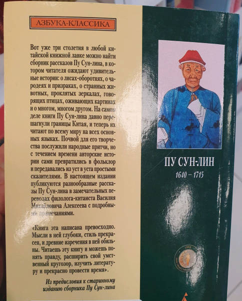 В настоящем издании публикуются разнообразные рассказы Пу Сун-лина в замечательных переводах филолога-китаиста Василия Михайлович Алексеева с подробными примечаниями.СвернутьВот уже три столетия в любой китайской книжной лавке можно найти сборник рассказов Пу Сун-лина, в котором читателя ожидают удивительные истории: о лисах-оборотнях, о чародеях и призраках, о странных животных, проклятых зеркалах, говорящих птицах, оживающих картинах и о многом, многом другом. На самом деле книги Пу Сун-лина давно перешагнули границы Китая, и теперь их читают по всему миру на всех основных языках. Автор их был ученым конфуцианского воспитания и, строго говоря, ему вовсе не подобало писать рассказы, содержащие всевозможные чудеса и эротические мотивы. Однако Пу Сун-лин прославился именно такими книгами, став самым известным китайским писателем своего времени. Почвой для его творчества послужили народные притчи, но с течением времени авторские истории сами превратились в фольклор и передавались из уст в уста простыми сказителями.