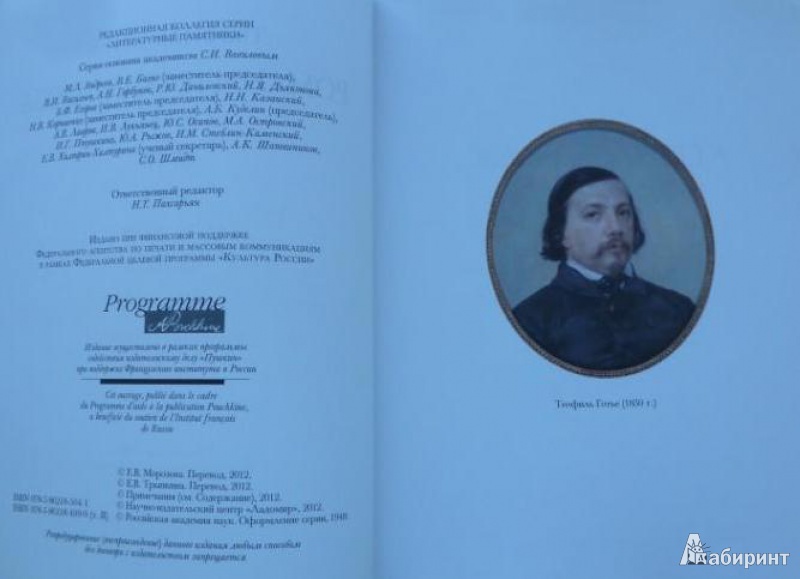 Объем, стр. 696 ISBN 978-5-86218-499-0 Автор Готье Теофиль, Трынкина Е. В., Морозова Елена Вячеславовна Переводчик Трынкина Е. В., Морозова Елена Вячеславовна Серия Литературные памятники Язык Русский Год издания книги 2012 Тип обложки Твердый переплет Иллюстрации Черно-белые + цветные Вес, г 1450г Размеры 222х172х37 мм - Отзывы