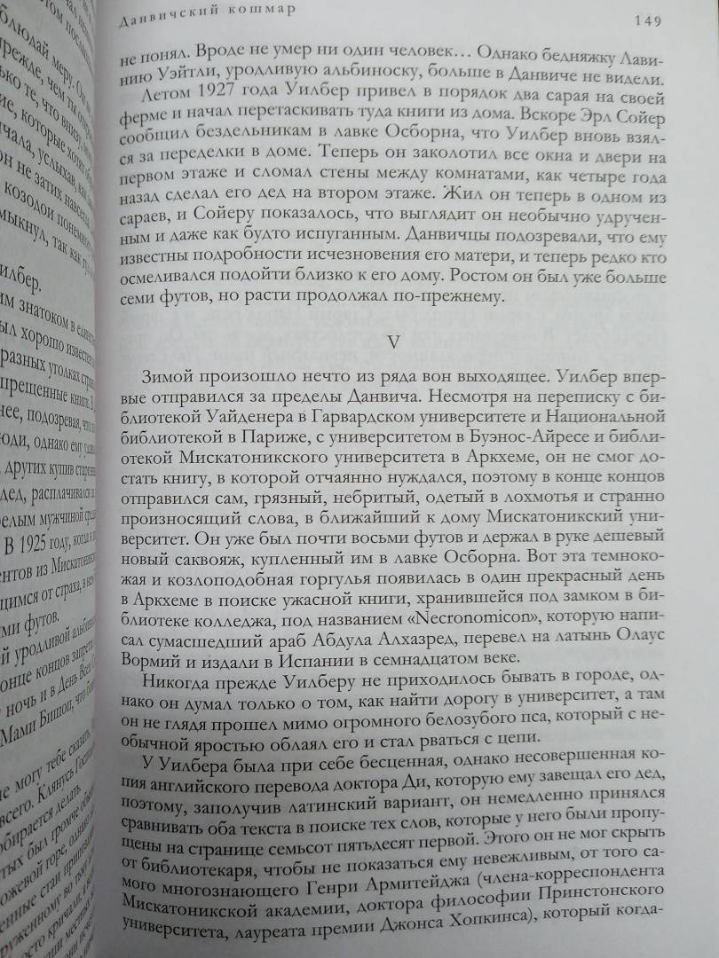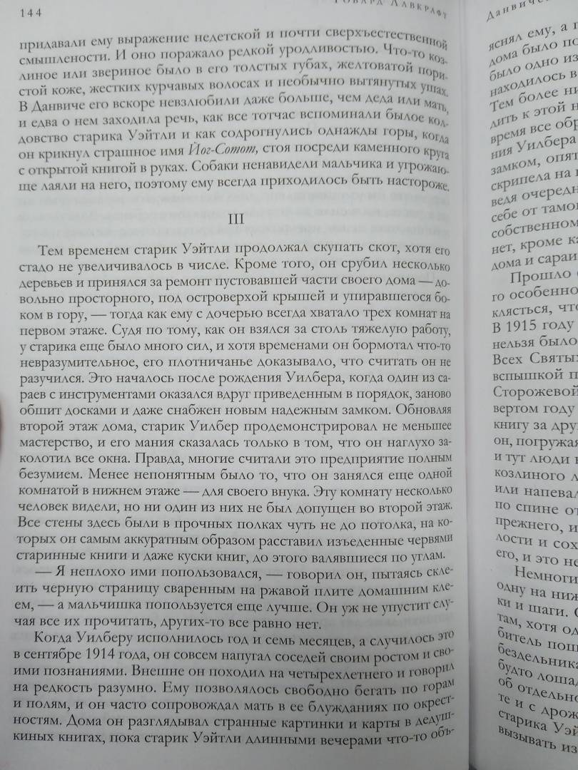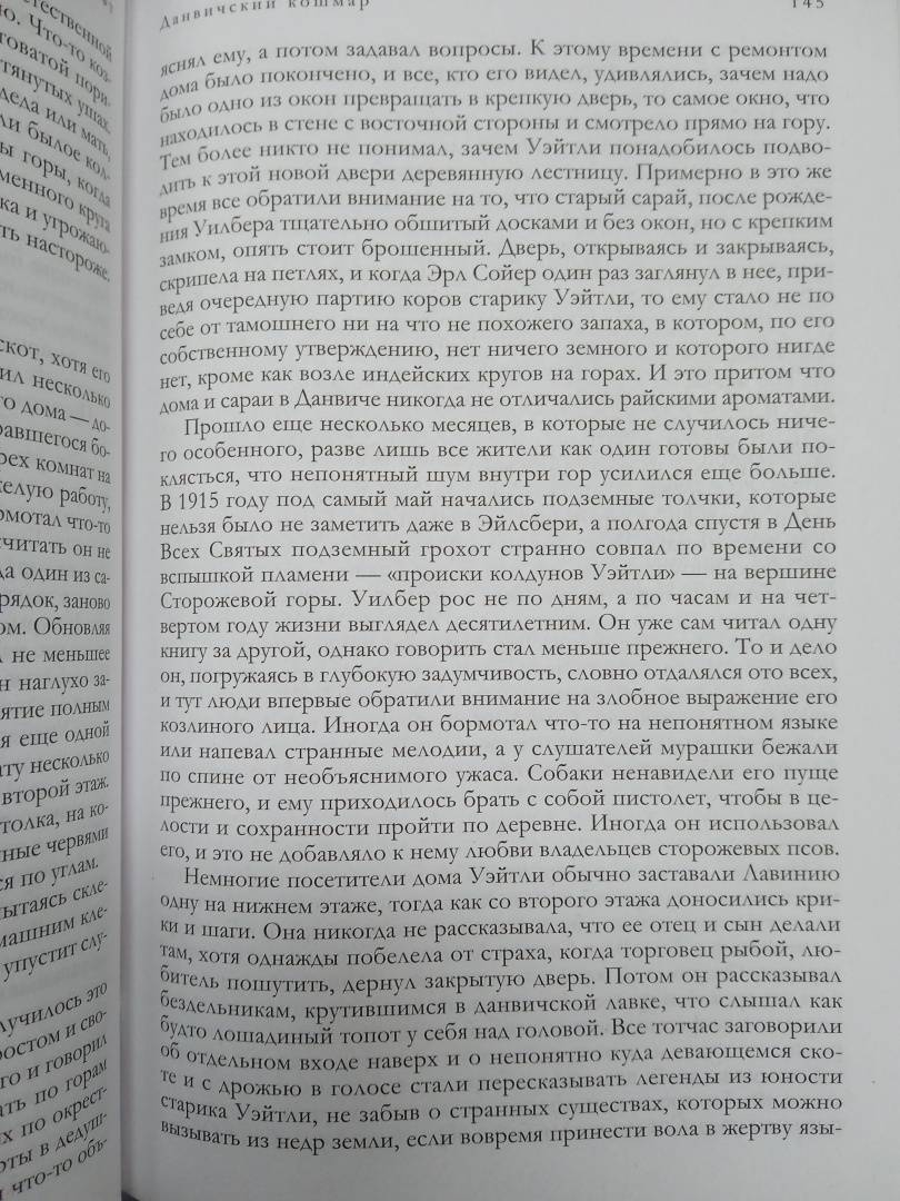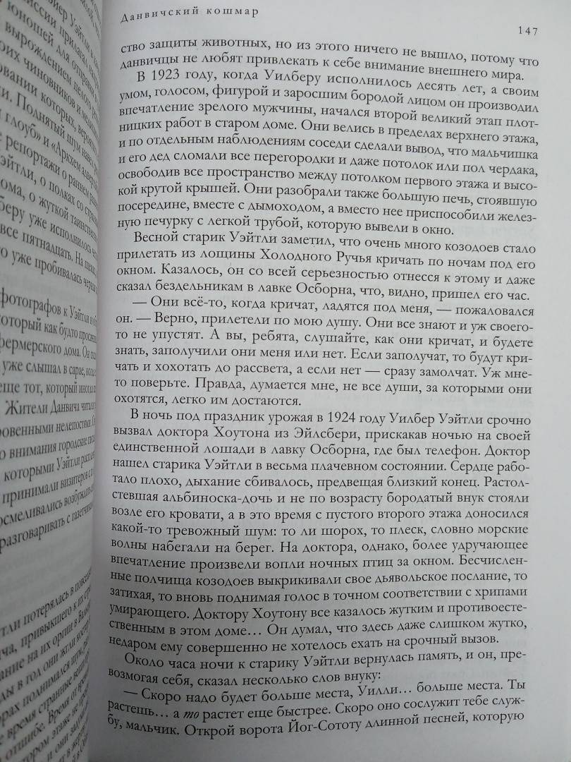 ОписаниеДобро пожаловать в мир Г.Ф. Лавкрафта! В нём вы окунётесь в атмосферу беспредельного ужаса перед неведомыми силами и почувствуете трепет прикосновения к сверхъестественному.Имя Говарда Филлипса Лавкрафта прогремело на весь мир, как эталон литературы ужаса. Фигура писателя окружена покровом домыслов, мифов и загадок. И действительно, чтобы создать свою вселенную, свой мир, разительно отличающийся от реального, надо было обладать неукротимой фантазией и смелостью безумца. При чтении его творений не покидает ощущение, что Зазеркалье совсем рядом, стоит только сделать один шаг, и ты очутишься в неведомом и жутком мире...Лавкрафт смешал обыденную действительность и вселенский кошмар, показал столкновение простого человека с непостижимыми, а порой и смертельно опасными созданиями. Дагон, Ктулху, Йог-Сотот и многие другие темные божества, придуманные им в 1920-е годы, приобрели впоследствии такую популярность, что сотни творцов фантастики, включая Нила Геймана и Стивена Кинга, до сих пор продолжают расширять его мифологию. Из последнего в 2022 году вышел сериал "Кабинет редкостей Гильермо дель Торо", где два эпизода основаны на рассказах Лавкрафта.В сборник вошли как самые известные рассказы писателя, так и многие давно не переиздававшиеся рассказы.СвернутьДобро пожаловать в мир Г.Ф. Лавкрафта! В нём вы окунётесь в атмосферу беспредельного ужаса перед неведомыми силами и почувствуете трепет прикосновения к сверхъестественному.Имя Говарда Филлипса Лавкрафта прогремело на весь мир, как эталон литературы ужаса. Фигура писателя окружена покровом домыслов, мифов и загадок. И действительно, чтобы создать свою вселенную, свой мир, разительно отличающийся от реального, надо было обладать неукротимой фантазией и смелостью безумца. При чтении его творений не покидает ощущение, что Зазеркалье совсем рядом, стоит только сделать один шаг, и ты очутишься в неведомом и жутком мире...Лавкрафт смешал обыденную действительность и вселенский кошмар, показал столкновение простого человека с непостижимыми, а порой и смертельно опасными созданиями. Дагон, Ктулху, Йог-Сотот и многие другие темные божества, придуманные им в 1920-е годы, приобрели впоследствии такую популярность, что сотни творцов фантастики, включая Нила Геймана и Стивена Кинга, до сих пор продолжают расширять его мифологию. Из последнего в 2022 году вышел сериал "Кабинет редкостей Гильермо дель Торо", где два эпизода основаны на рассказах Лавкрафта.В сборник вошли как самые известные рассказы писателя, так и многие давно не переиздававшиеся рассказы.СвернутьСвернуть