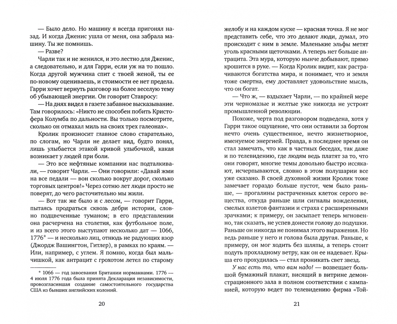 ОписаниеОдин из ключевых циклов американской литературы второй половины XX века. Обычная жизнь обычного человека, которая становится невыносимой, и невозможность сбежать от нее - основные темы этих романов."Кролик, беги". Первый из серии романов Джона Апдайка о Гарри Энгстроме, молодом американце по прозвищу Кролик, которого постоянно преследуют неудачи: в юности подававший надежды баскетболист, он бросает спорт, жену он не любит, а она постоянно прикладывается к бутылке, он бежит из дома, заводит случайный роман, переживает трагедию смерти новорожденной дочери, мечется между женой и любовницей, нигде не находя покоя, и снова бежит, не понимая, что от себя убежать невозможно."Кролик вернулся". "Кролик вернулся" - второй роман из серии произведений Джона Апдайка о Гарри Энгстроме по прозвищу Кролик. Герою уже почти сорок лет, он почтенный отец семейства, и у него есть постоянная работа, он, казалось бы, понял, что от себя не убежишь. Но гладкой и спокойной его жизнь не назовешь: теперь уже жена Кролика убегает из дома, оставив мужа и сына, а в их доме поселяются представители "протестующей" молодежи Америки, протест которой не чурается наркотиков, беспорядочного секса и алкоголя…"Кролик разбогател". "Кролик разбогател" - третья книга из серии произведений Джона Апдайка о Гарри Энгстроме по прозвищу Кролик. Теперь герой живет в достатке, у него приличный бизнес по торговле автомобилями, а среди подчиненных - бывший любовник его жены, что тешит самолюбие Гарри. И бегает он теперь исключительно для укрепления физической формы. Но на этот раз уходит - убегает - из дома его сын Нельсон, повторяя судьбу своих родителей. Нельсон тоже стремится к свободе, но обретет ли он ее?..СвернутьОдин из ключевых циклов американской литературы второй половины XX века. Обычная жизнь обычного человека, которая становится невыносимой, и невозможность сбежать от нее - основные темы этих романов."Кролик, беги". Первый из серии романов Джона Апдайка о Гарри Энгстроме, молодом американце по прозвищу Кролик, которого постоянно преследуют неудачи: в юности подававший надежды баскетболист, он бросает спорт, жену он не любит, а она постоянно прикладывается к бутылке, он бежит из дома, заводит случайный роман, переживает трагедию смерти новорожденной дочери, мечется между женой и любовницей, нигде не находя покоя, и снова бежит, не понимая, что от себя убежать невозможно."Кролик вернулся". "Кролик вернулся" - второй роман из серии произведений Джона Апдайка о Гарри Энгстроме по прозвищу Кролик. Герою уже почти сорок лет, он почтенный отец семейства, и у него есть постоянная работа, он, казалось бы, понял, что от себя не убежишь. Но гладкой и спокойной его жизнь не назовешь: теперь уже жена Кролика убегает из дома, оставив мужа и сына, а в их доме поселяются представители "протестующей" молодежи Америки, протест которой не чурается наркотиков, беспорядочного секса и алкоголя…"Кролик разбогател". "Кролик разбогател" - третья книга из серии произведений Джона Апдайка о Гарри Энгстроме по прозвищу Кролик. Теперь герой живет в достатке, у него приличный бизнес по торговле автомобилями, а среди подчиненных - бывший любовник его жены, что тешит самолюбие Гарри. И бегает он теперь исключительно для укрепления физической формы. Но на этот раз уходит - убегает - из дома его сын Нельсон, по