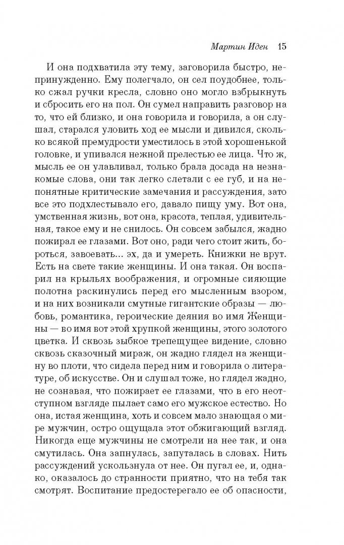 ОписаниеВыдающийся роман Джека Лондона о человеке из низов, простом моряке, добившемся успеха, о поиске места в жизни, муках творчества и муках любви. Герой этого, во многом автобиографичного произведения, проходит через тяжелые испытания и благодаря упорному труду и необъятной энергии превосходит своих учителей и меняет свою жизнь. Творческий дар становится пропуском Мартину Идену в высший свет. Отныне две цели неотступно стоят перед ним: слава писателя и обладание любимой женщиной. Только мечты непредсказуемы и коварны: неизвестно, когда они сбудутся и принесет ли это долгожданную радость.Выдающийся роман Джека Лондона о человеке из низов, простом моряке, добившемся успеха, о поиске места в жизни, муках творчества и муках любви. Герой этого, во многом автобиографичного произведения, проходит через тяжелые испытания и благодаря упорному труду и необъятной энергии превосходит своих учителей и меняет свою жизнь. Творческий дар становится пропуском Мартину Идену в высший свет. Отныне две цели неотступно стоят перед ним: слава писателя и обладание любимой женщиной. Только мечты непредсказуемы и коварны: неизвестно, когда они сбудутся и принесет ли это долгожданную радость.
