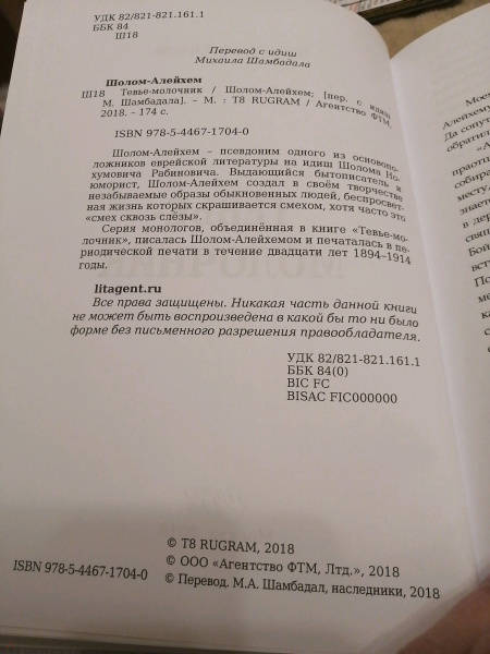 Объем, стр. 178 ISBN 978-5-4467-1704-0 Автор Шолом-Алейхем, Шамбадал Михаил Переводчик Шамбадал Михаил Серия ФТМ Минимальный возраст 16+ Год издания книги 2018 Тип обложки Твердый переплет Иллюстрации Без иллюстраций Вес, г 322г Размеры 215х152х12 мм - Отзывы