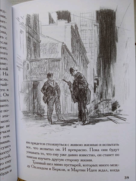 Описание"Мартин Иден" - центральное, главное произведение в творчестве Джека Лондона. Роман очень скоро вышел за рамки авторского замысла. Частная история писателя стала символом, образом писательской судьбы, в которой лишений больше, чем наград; в которой общество отторгает творца, если его работа не выражается в денежном эквиваленте; и в которой даже признание не приносит долгожданного счастья.Роман имеет автобиографическую основу и потому обладает особой проникновенностью и трагичностью. Это сам Джек Лондон боролся с издателями, получал отказ за отказом, требовал выплаты гонораров. Это он голодал, отдавая все силы искусству. Это он зарабатывал деньги тяжелым трудом в море и в паровой прачечной. Шел наперекор всем обстоятельствам и наконец обрел славу и признание. Но какова цена этой победы?..Иллюстрации петербургского художника Николая Лаврухина подготовлены специально для этого издания и публикуются впервые. Созданные в лучших традициях реалистического рисунка, они добавляют тексту дополнительную глубину и достоверность.Свернуть"Мартин Иден" - центральное, главное произведение в творчестве Джека Лондона. Роман очень скоро вышел за рамки авторского замысла. Частная история писателя стала символом, образом писательской судьбы, в которой лишений больше, чем наград; в которой общество отторгает творца, если его работа не выражается в денежном эквиваленте; и в которой даже признание не приносит долгожданного счастья.Роман имеет автобиографическую основу и потому обладает особой проникновенностью и трагичностью. Это сам Джек Лондон боролся с издателями, получал отказ за отказом, требовал выплаты гонораров. Это он голодал, отдавая все силы искусству. Это он зарабатывал деньги тяжелым трудом в море и в паровой прачечной. Шел наперекор всем обстоятельствам и наконец обрел славу и признание. Но какова цена этой победы?..Иллюстрации петербургского художника Николая Лаврухина подготовлены специально для этого издания и публикуются впервые. Созданные в лучших традициях реалистического рисунка, они добавляют тексту дополнительную глубину и достоверность.СвернутьСвернуть