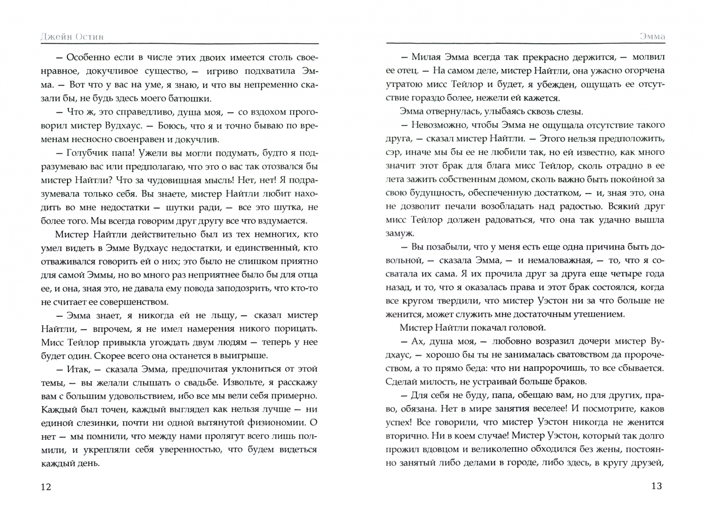 Описание«Эмма» — во много автобиографичный роман стал последним произведением Джейн Остин, которое увидело свет при ее жизни. Роман написан в юмористической манере и посвящен молодой женщине, которая с увлечением сватает своих знакомых и соседей. «Эмма» открывает перед читателем глубокое знание человеческого сердца, и это знание ставится на службу чести и добродетели. Знание писательницей мира, ее особый такт, с которым она описывает своих героев, раскрывает настолько точен взгляд писательницы к малейшим деталям быта и человеческого характера.«Эмма» — во много автобиографичный роман стал последним произведением Джейн Остин, которое увидело свет при ее жизни. Роман написан в юмористической манере и посвящен молодой женщине, которая с увлечением сватает своих знакомых и соседей. «Эмма» открывает перед читателем глубокое знание человеческого сердца, и это знание ставится на службу чести и добродетели. Знание писательницей мира, ее особый такт, с которым она описывает своих героев, раскрывает настолько точен взгляд писательницы к малейшим деталям быта и человеческого характера.