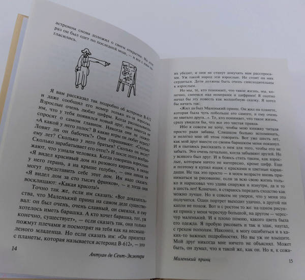 Описание«Маленький принц» — наиболее известное (переведено более чем на 180 языков) произведение Экзюпери, написанное незадолго до смерти автора и им же проиллюстрированное. Эта печальная, мудрая, человечная сказка предназначена, скорее, взрослым, чем детям. В ней рассказано о самом важном: о дружбе и любви, о долге и верности…Читая эту чудесную историю, и улыбнешься, и взгрустнешь, и непременно задумаешься, над тем, что не всегда можно понять разумом… Как говорил Маленький принц — «увидишь сердцем».В издание также включен сборник эссе «Планета людей».«Маленький принц» — наиболее известное (переведено более чем на 180 языков) произведение Экзюпери, написанное незадолго до смерти автора и им же проиллюстрированное. Эта печальная, мудрая, человечная сказка предназначена, скорее, взрослым, чем детям. В ней рассказано о самом важном: о дружбе и любви, о долге и верности…Читая эту чудесную историю, и улыбнешься, и взгрустнешь, и непременно задумаешься, над тем, что не всегда можно понять разумом… Как говорил Маленький принц — «увидишь сердцем».В издание также включен сборник эссе «Планета людей».