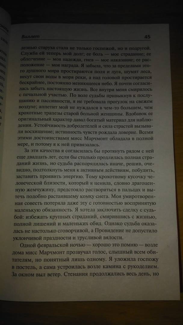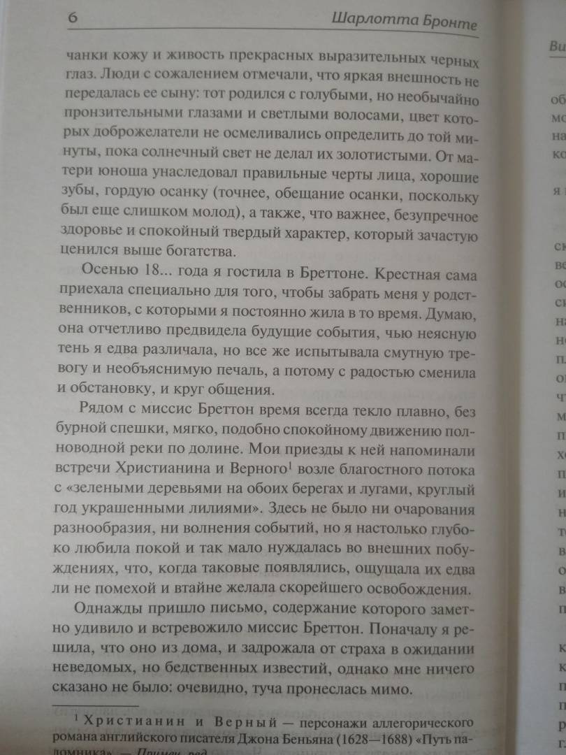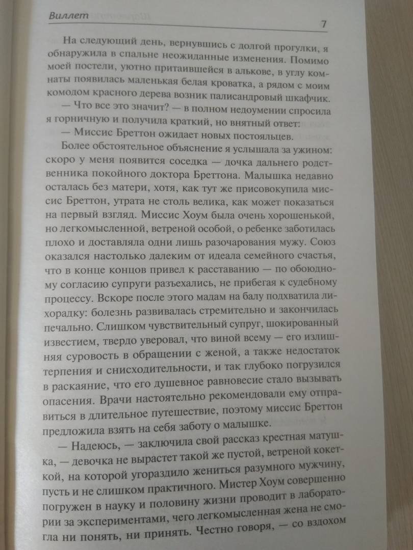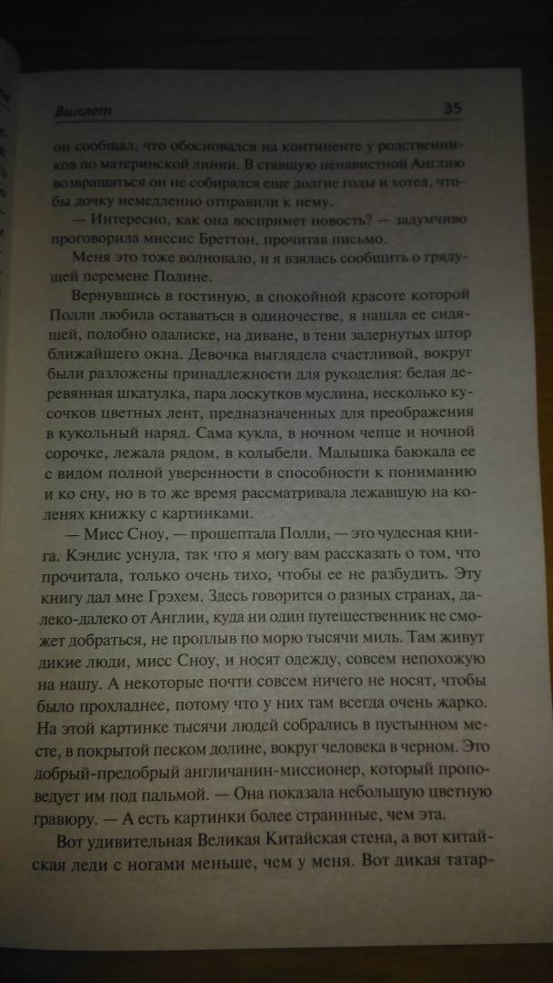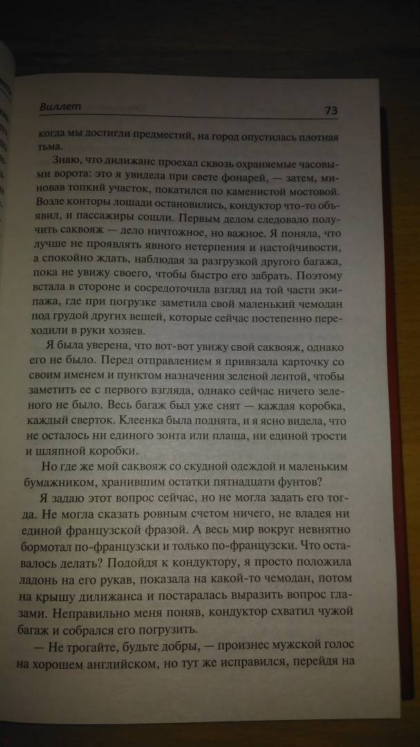 ОписаниеЛюси Сноу – юная сирота, у которой нет ни денег, ни родных. Однако у нее есть отличное образование, твердый характер и достаточно авантюрный склад ума, чтобы в одиночку отправиться на континент и подыскать выгодное место учительницы английского языка в респектабельном пансионе для молодых девиц.Именно там, среди упорного повседневного труда и мелких женских интриг, судьба сводит ее с двумя очень разными мужчинами – англичанином Джоном и бельгийцем Полем. Первый кажется истинным образцом спокойного британского обаяния, второй мрачен, резок и неровен. Первый вызывает у Люси теплую симпатию, второй – целую бурю противоречивых чувств. Но станет ли один из них ее любовью и судьбой – этого Люси пока не знает...Люси Сноу – юная сирота, у которой нет ни денег, ни родных. Однако у нее есть отличное образование, твердый характер и достаточно авантюрный склад ума, чтобы в одиночку отправиться на континент и подыскать выгодное место учительницы английского языка в респектабельном пансионе для молодых девиц.Именно там, среди упорного повседневного труда и мелких женских интриг, судьба сводит ее с двумя очень разными мужчинами – англичанином Джоном и бельгийцем Полем. Первый кажется истинным образцом спокойного британского обаяния, второй мрачен, резок и неровен. Первый вызывает у Люси теплую симпатию, второй – целую бурю противоречивых чувств. Но станет ли один из них ее любовью и судьбой – этого Люси пока не знает...