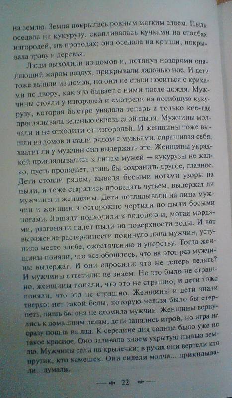 ОписаниеТворчество американского писателя Джона Стейнбека - заметная страница в мировой литературе. Стейнбек - лауреат Пулитцеровской и Нобелевской премий - художник яркий, выразительный, остро переживающий проблемы человечества. После выхода романа "Гроздья гнева", Теодор Драйзер назвал его автора одним из "самых талантливых прозаиков нашего поколения".В конце 30-х годов многие центральные штаты США пострадали от сильной засухи и пыльных бурь. Тысячи разорившихся фермеров и арендаторов покидали родные края, и "волна" переселенцев буквально захлестнула цветущую Калифорнию. Это "переселение народов" со всеми сопутствующими драмами и переживаниями, трудный путь семьи Джоуд в Калифорнию, их стойкость и мужество, запечатлел Джон Стейнбек в лучшем своем романе.Творчество американского писателя Джона Стейнбека - заметная страница в мировой литературе. Стейнбек - лауреат Пулитцеровской и Нобелевской премий - художник яркий, выразительный, остро переживающий проблемы человечества. После выхода романа "Гроздья гнева", Теодор Драйзер назвал его автора одним из "самых талантливых прозаиков нашего поколения".В конце 30-х годов многие центральные штаты США пострадали от сильной засухи и пыльных бурь. Тысячи разорившихся фермеров и арендаторов покидали родные края, и "волна" переселенцев буквально захлестнула цветущую Калифорнию. Это "переселение народов" со всеми сопутствующими драмами и переживаниями, трудный путь семьи Джоуд в Калифорнию, их стойкость и мужество, запечатлел Джон Стейнбек в лучшем своем романе.