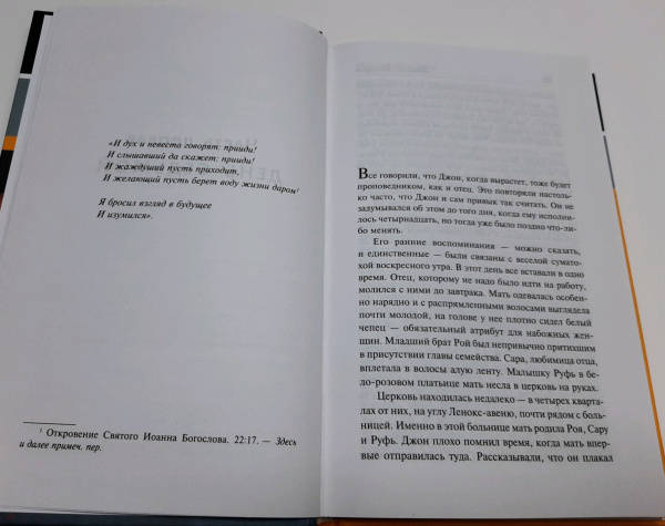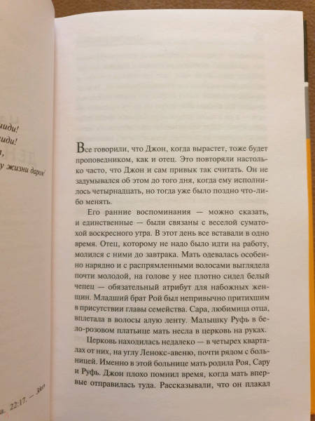 ОписаниеТри молитвы. Три исповеди.Три взгляда на историю афроамериканской семьи – долгую и непростую историю, которая начинается в годы войны Севера и Юга и тянется до 30-х годов ХХ столетия.Три отчаянных, надрывающих сердце крика – в небеса и в глубины собственной души.Яростно взывает к Господу чернокожий проповедник, изнемогающий под тяжестью давнего греха.Горестно стенает его сестра – невольная участница далекой драмы.Отчаянно спорит с жестокостью суда людского и Божьего жена священника – мать его пасынка Джона, прошлое которой скрывает собственную трагедию.А что же сам юный Джон? Он еще только готовится обрести собственный голос. Собственный взгляд на прошлое, настоящее и будущее, на земное и небесное, грешное и святое.О чем станет молиться Господу Джон? И чьи молитвы услышит Господь?Три молитвы. Три исповеди.Три взгляда на историю афроамериканской семьи – долгую и непростую историю, которая начинается в годы войны Севера и Юга и тянется до 30-х годов ХХ столетия.Три отчаянных, надрывающих сердце крика – в небеса и в глубины собственной души.Яростно взывает к Господу чернокожий проповедник, изнемогающий под тяжестью давнего греха.Горестно стенает его сестра – невольная участница далекой драмы.Отчаянно спорит с жестокостью суда людского и Божьего жена священника – мать его пасынка Джона, прошлое которой скрывает собственную трагедию.А что же сам юный Джон? Он еще только готовится обрести собственный голос. Собственный взгляд на прошлое, настоящее и будущее, на земное и небесное, грешное и святое.О чем станет молиться Господу Джон? И чьи молитвы услышит Господь?