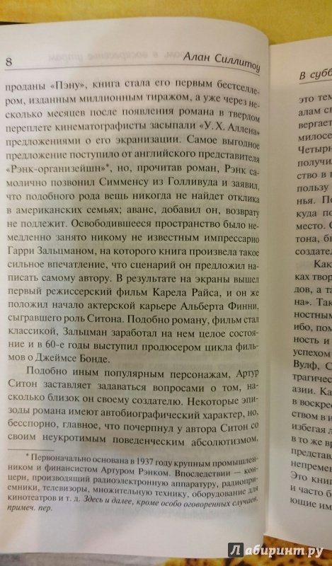 --Алан Силлитоу: В субботу вечером, в воскресенье утромРусская классическая и современная литератураДетектив. Остросюжетная литератураЗарубежная художественная литератураРусская художественная литератураФэнтезиДраматургияПоэзияПриключенияФантастикаЭпос и фольклорКлассическая прозаАфоризмыИсторическая прозаДетективыБасниСентиментальная прозаОтечественный боевикСовременная прозаМолодежная литератураЗарубежная классическая и современная литература
