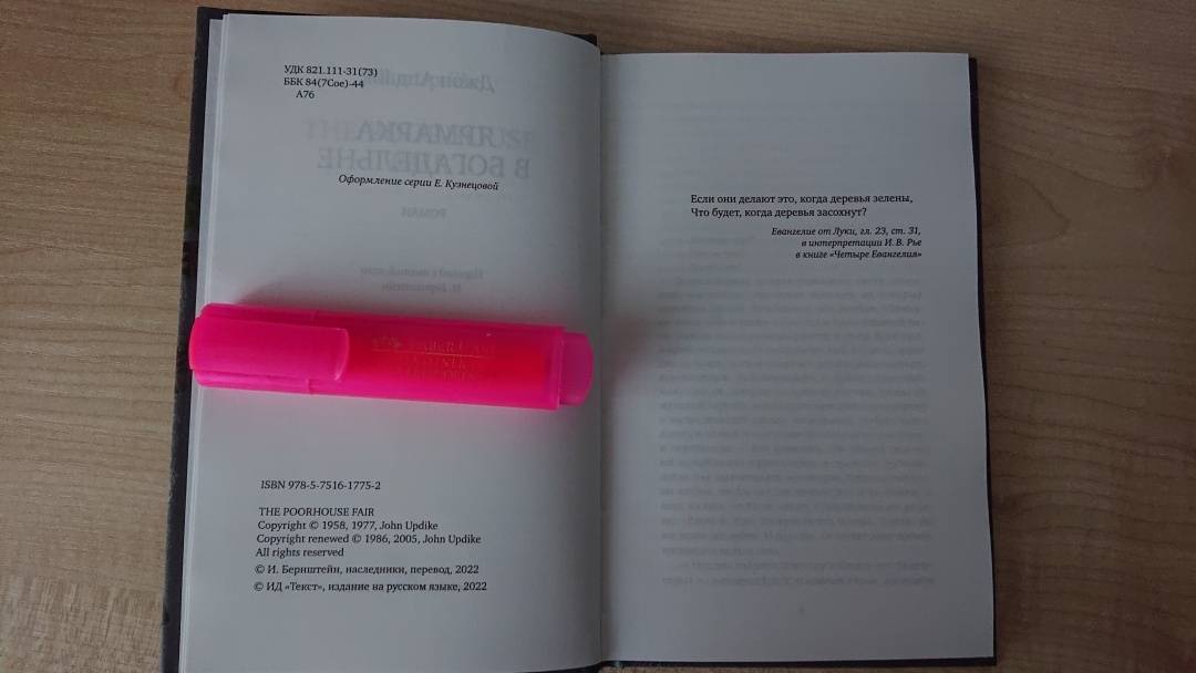 Объем, стр. 192 ISBN 978-5-7516-1775-2 Автор Апдайк Джон, Бернштейн Инна Максимовна Переводчик Бернштейн Инна Максимовна Серия Классика ХХ Язык Русский Минимальный возраст 16+ Год издания книги 2022 Тип обложки Твердый переплет Иллюстрации Без иллюстраций Вес, г 242г Размеры 208х132х13 мм - Отзывы